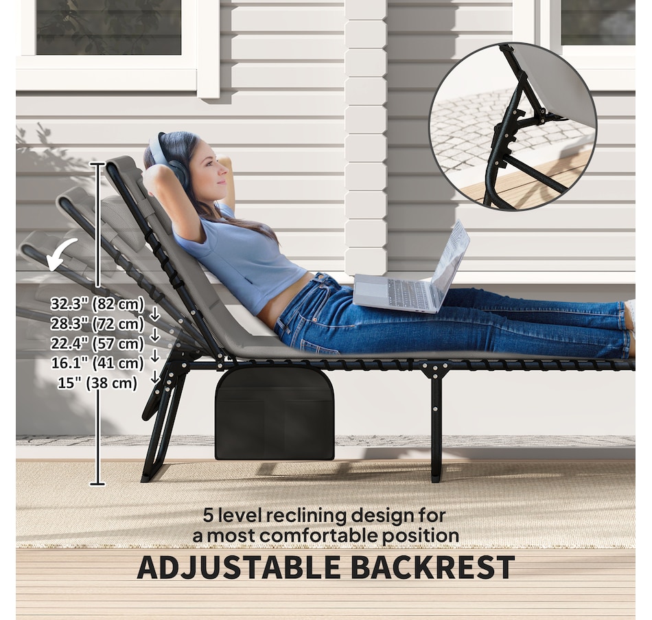 ● 5-level reclining back allows adjustable comfort for relaxation;