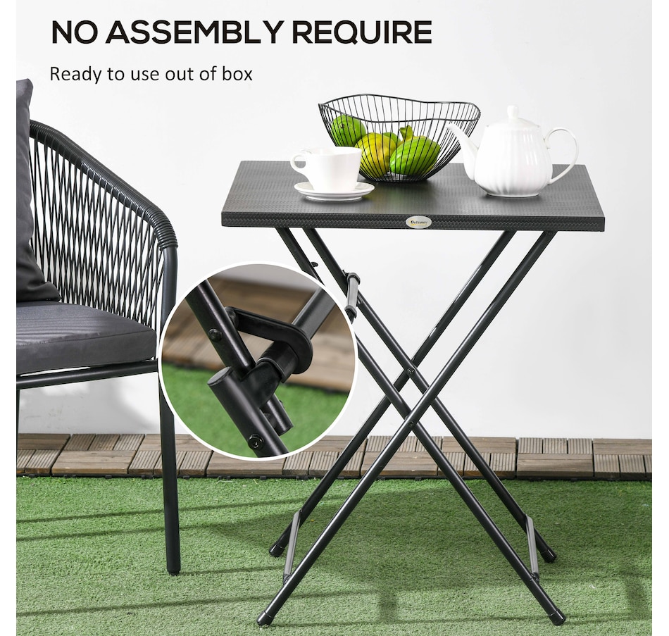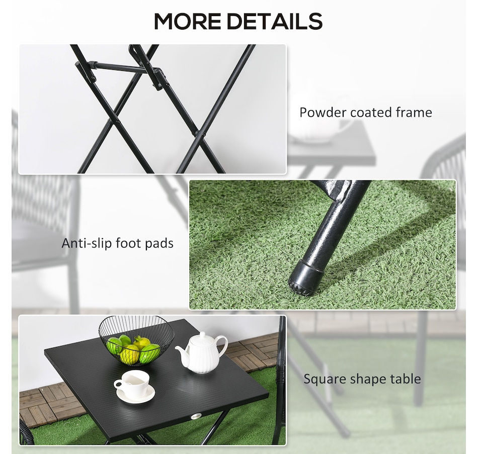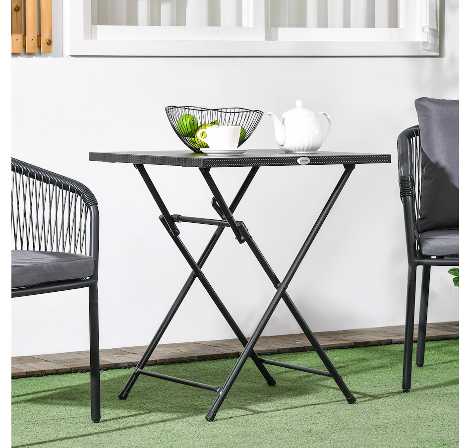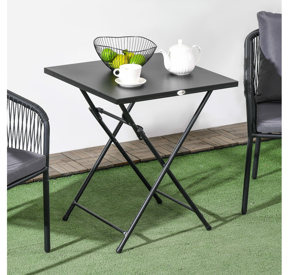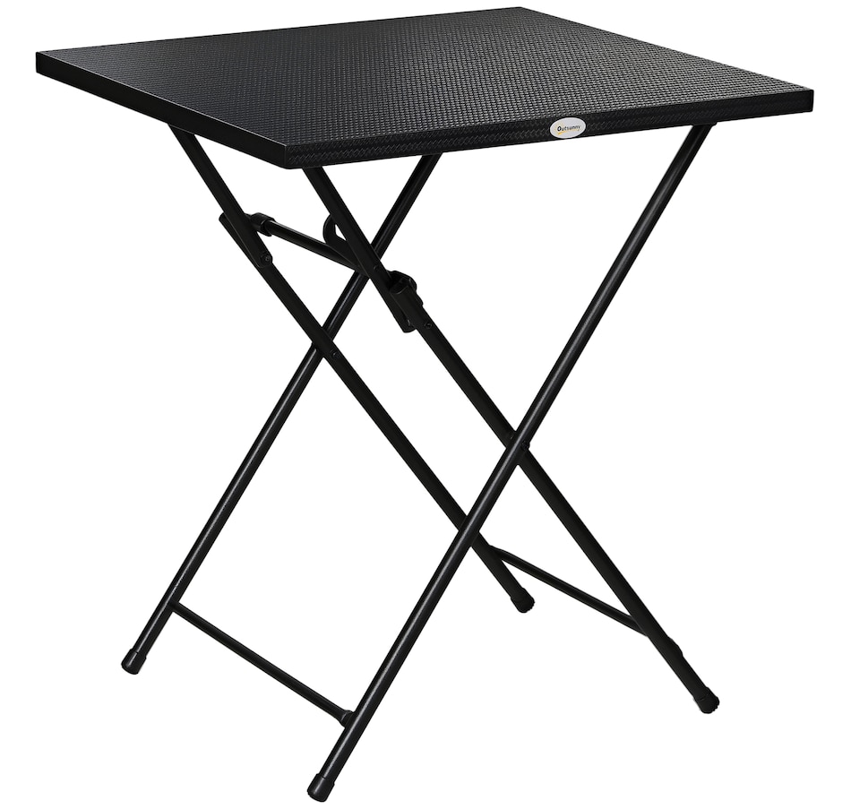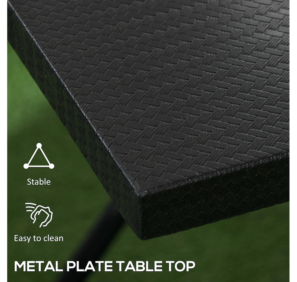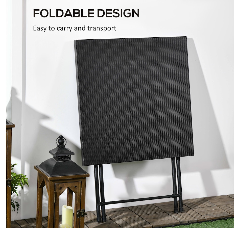 Outsunny's charming folding table is the great addition to elevate your home decor. This foldable table offers both compact convenience and a modern aesthetic that effortlessly enhances any existing decor. With its round shape and black printed tabletop, cleaning is a breeze with just a damp cloth. The steel frame with a powder-coated finish ensures durability and can withstand various weather conditions. Let this table be your companion for enjoyable leisure time.Features: