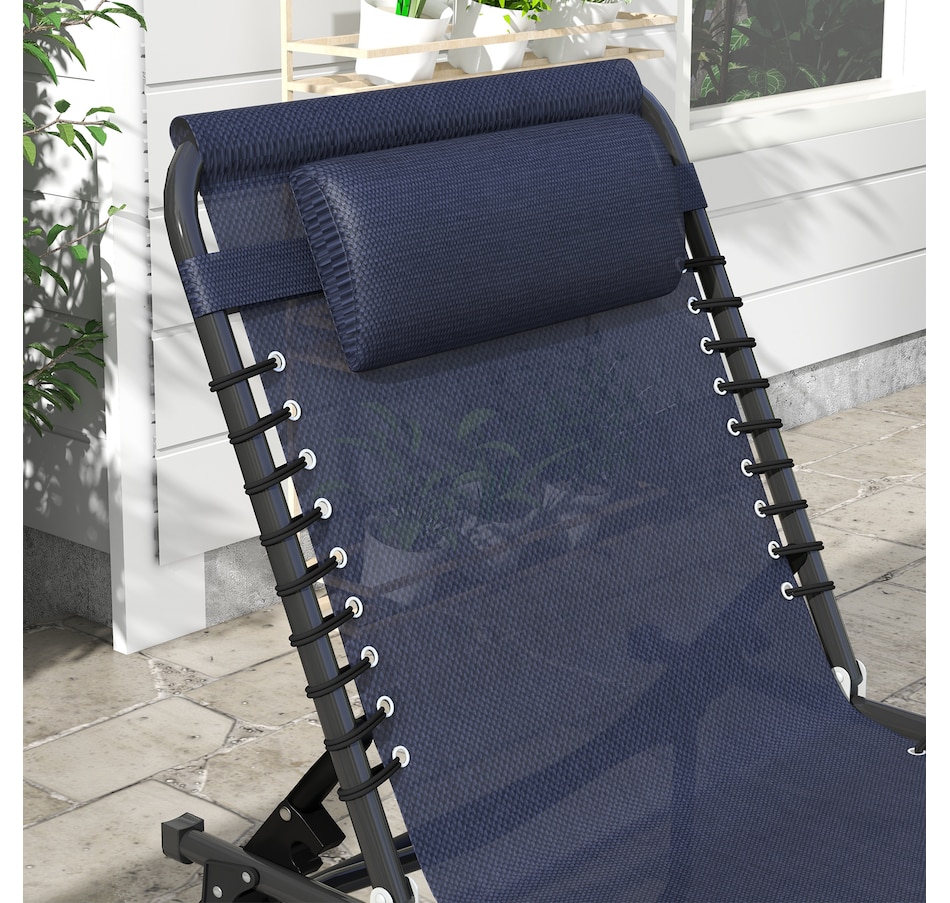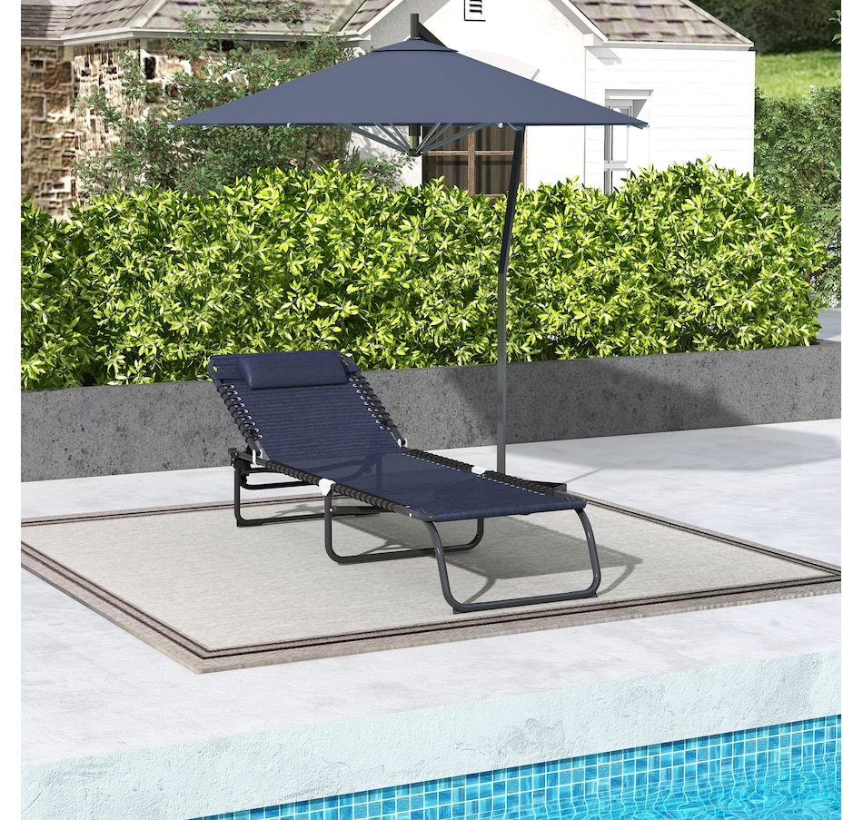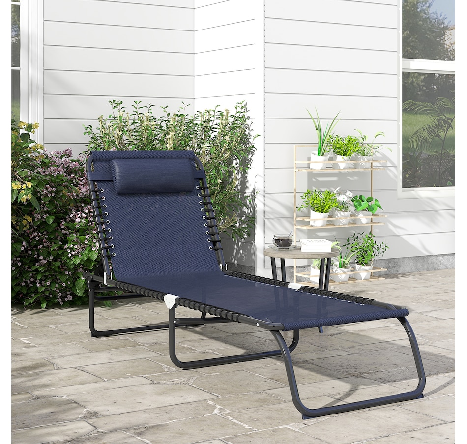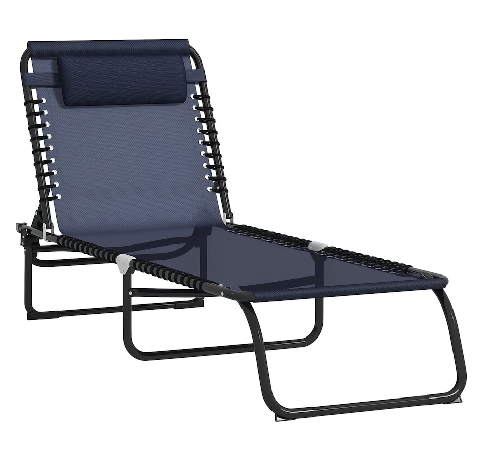 Folding Lounge Chair, Chaise Lounge with Headrest, Dark Blue