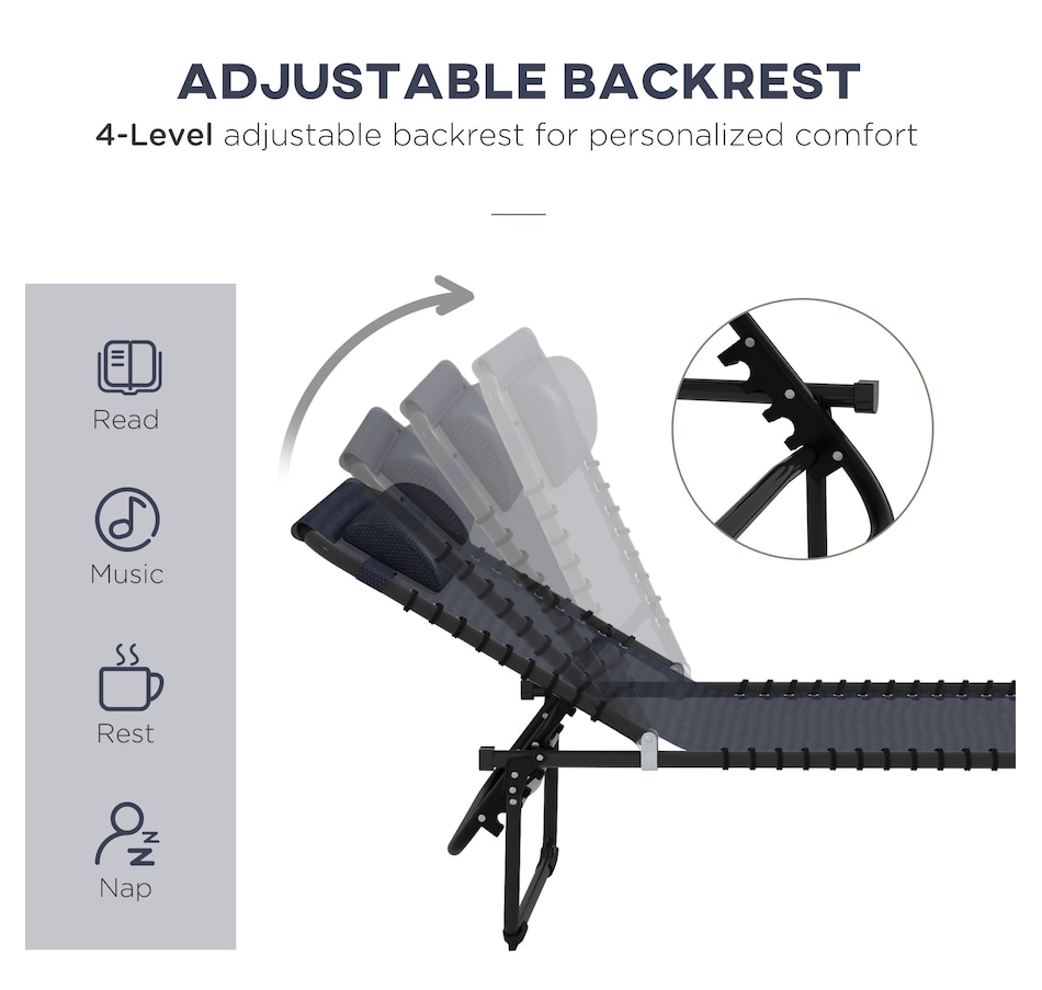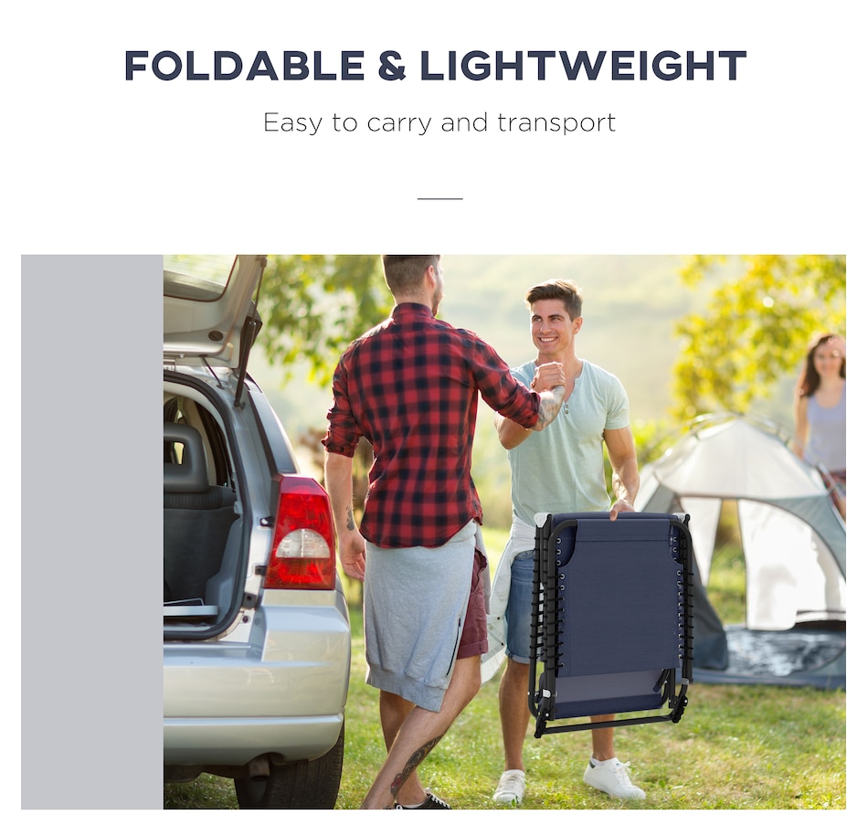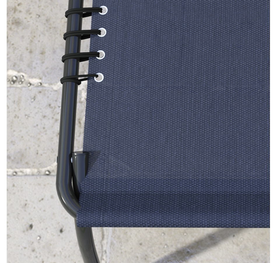 This reclining lawn chair offers quick-folding chaise lounge seating and sunbathing space. The backrest can be set to recline in 4 different positions so you can lie down at the angle of your choice. Easy to move and bring on the road, this lawn chair can fold up and come with you to the beach, a campsite, or a pool. Sit back and sunbathe on the form-fitting, quick-drying, bungee-suspended mesh. It stays cool in the sun and dries quickly if you sit after just getting out of the pool.