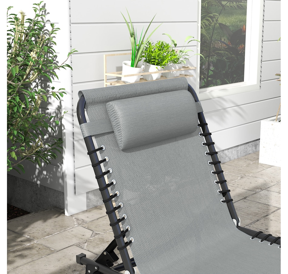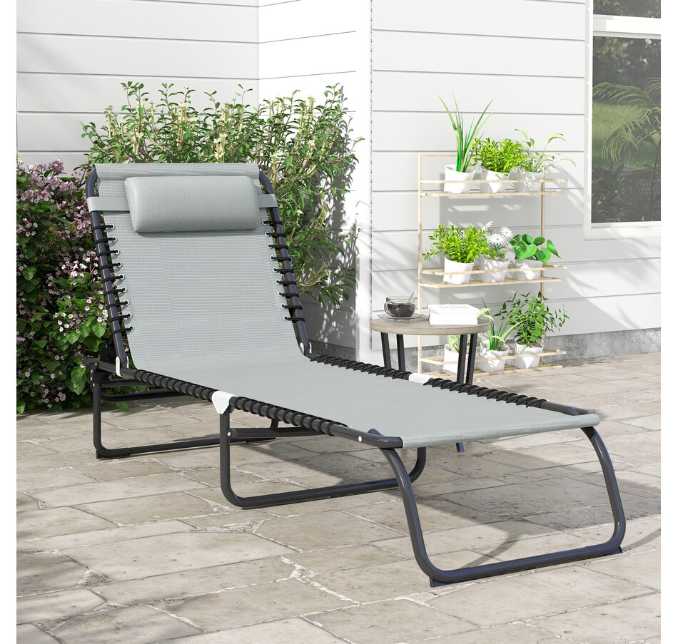 Folding Lounge Chair, Chaise Lounge with Headrest, Light Grey