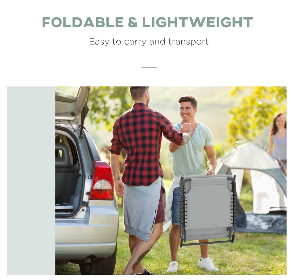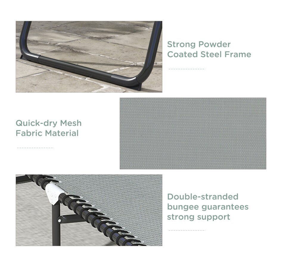 This reclining lawn chair offers quick-folding chaise lounge seating and sunbathing space. The backrest can be set to recline in 4 different positions so you can lie down at the angle of your choice. Easy to move and bring on the road, this lawn chair can fold up and come with you to the beach, a campsite, or a pool. Sit back and sunbathe on the form-fitting, quick-drying, bungee-suspended mesh. It stays cool in the sun and dries quickly if you sit after just getting out of the pool.