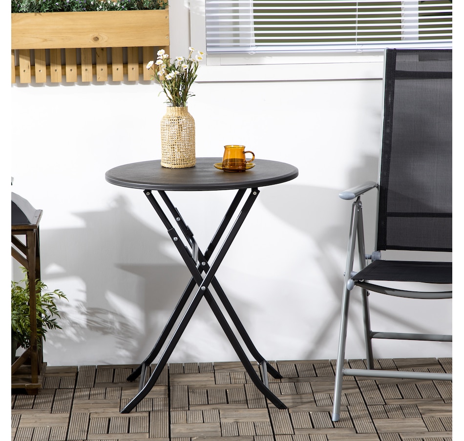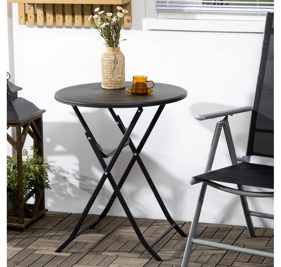 Enhance your outdoor space with this stylish Outsunny patio coffee table—a decorative and practical accent for any setting! The combination of a steel frame and plastic tabletop offers excellent stability and easy maintenance. The folding patio side table is portable and simple to store when not in use. This small patio table brings extra comfort to your terrace with ease!