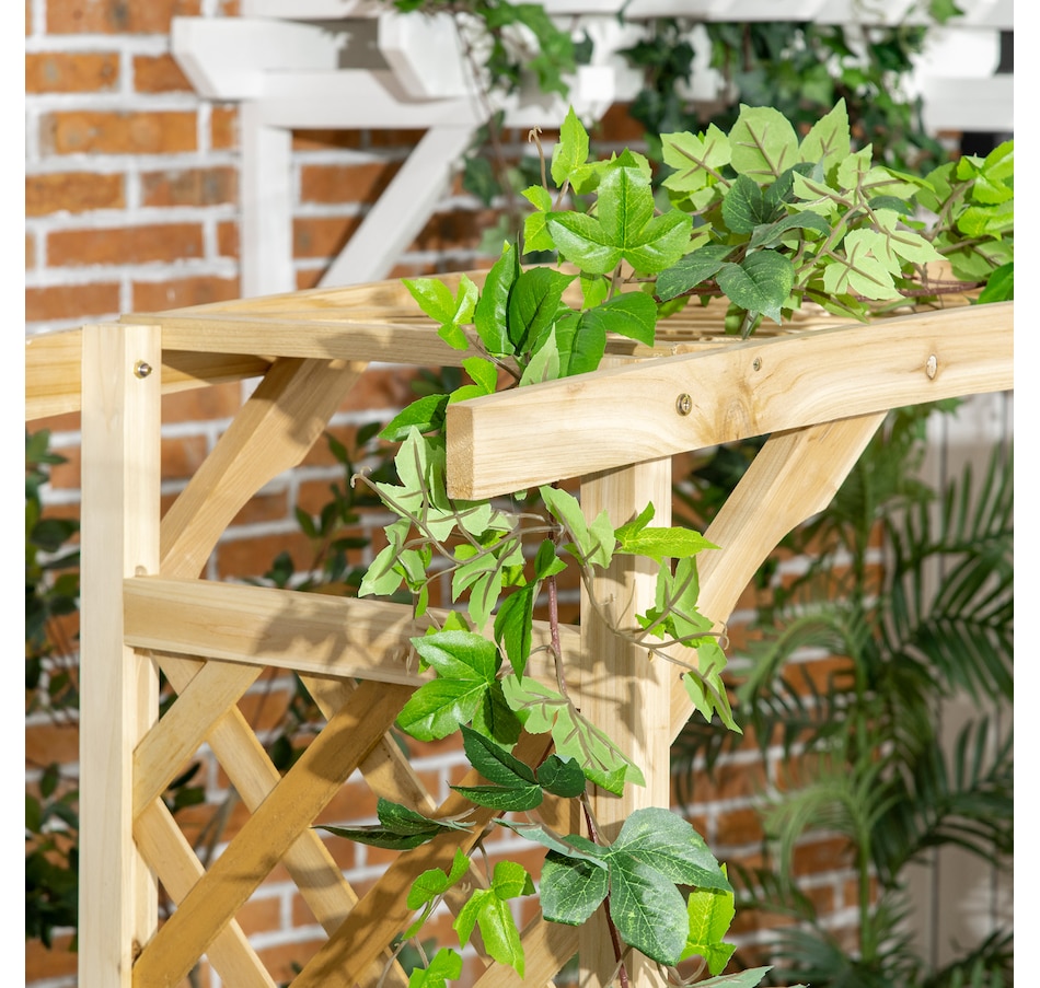 it also has a trellis on each side and a pergola over top to form a large arbor arch. Grow grape vines or any climbing plant without sacrificing space or style. It's great to decorate