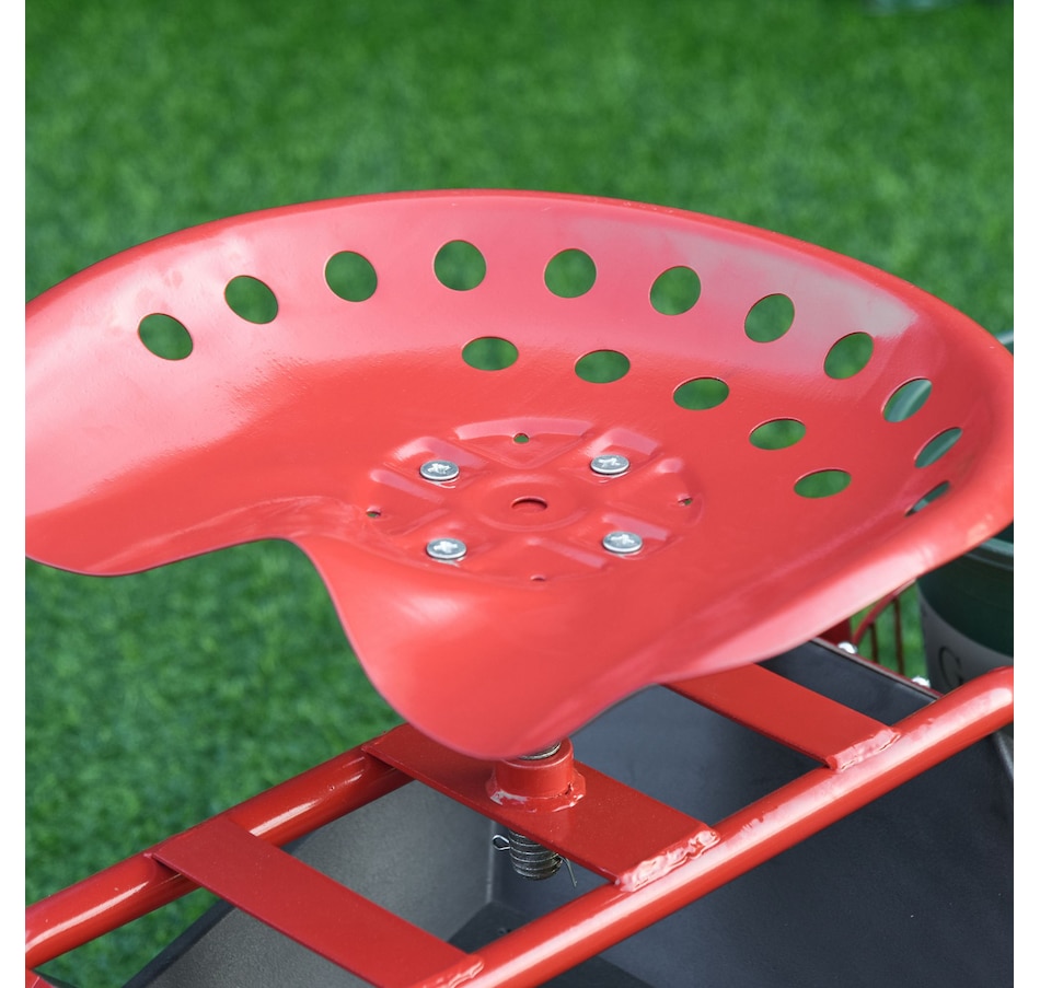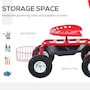 Garden Scooter, Rolling Cart with Tray, Bucket, Red and Black