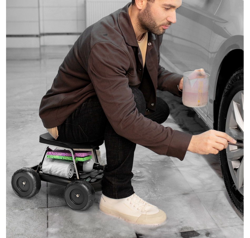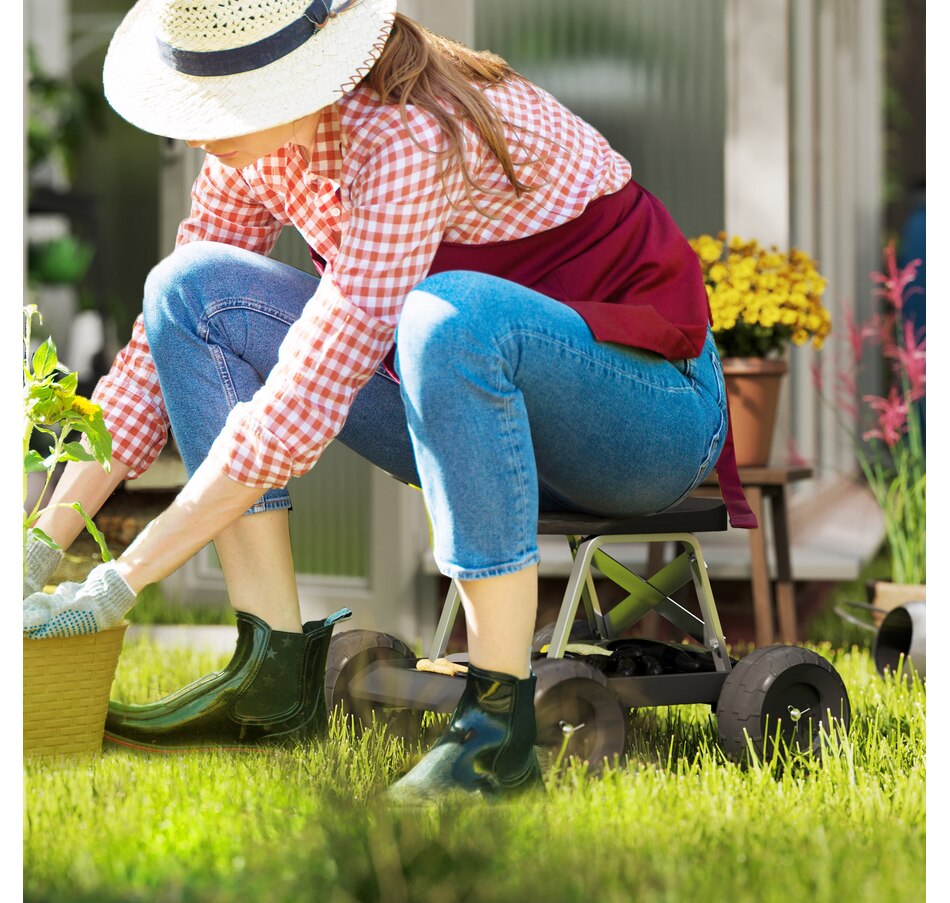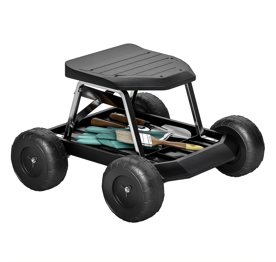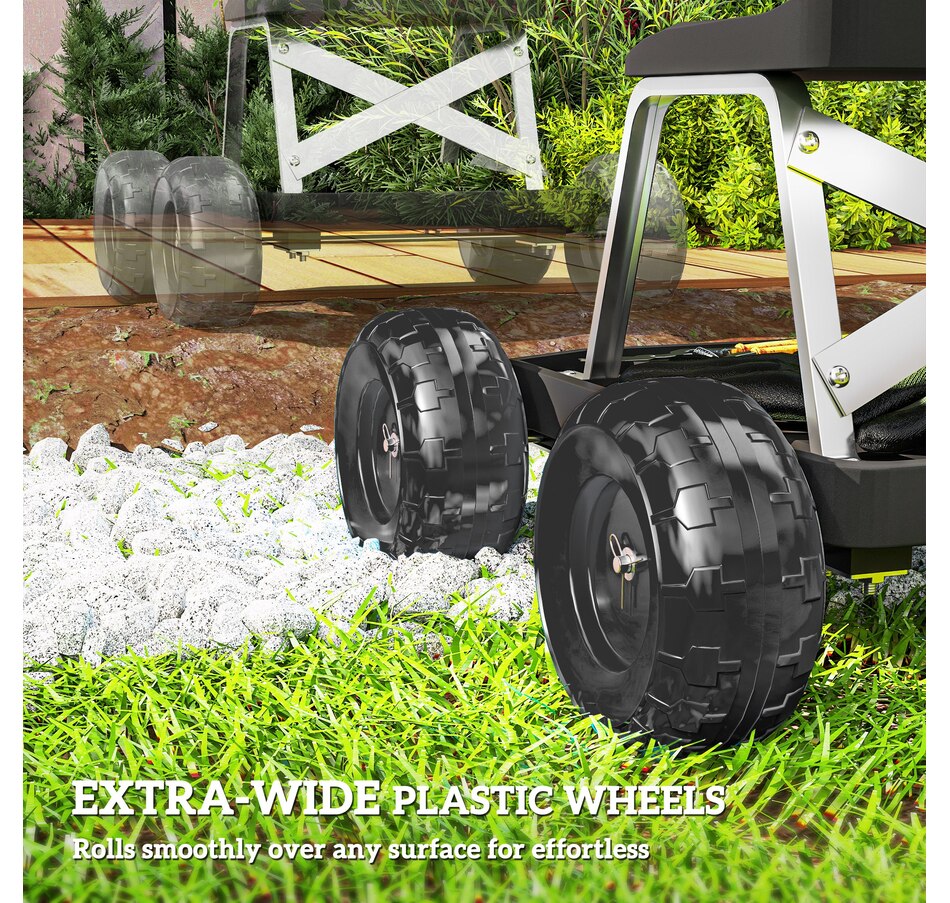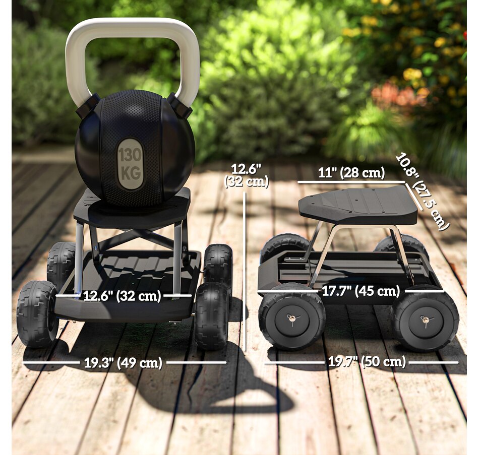Garden Seat with Wheels, Rolling Garden Stool, Black