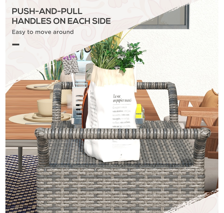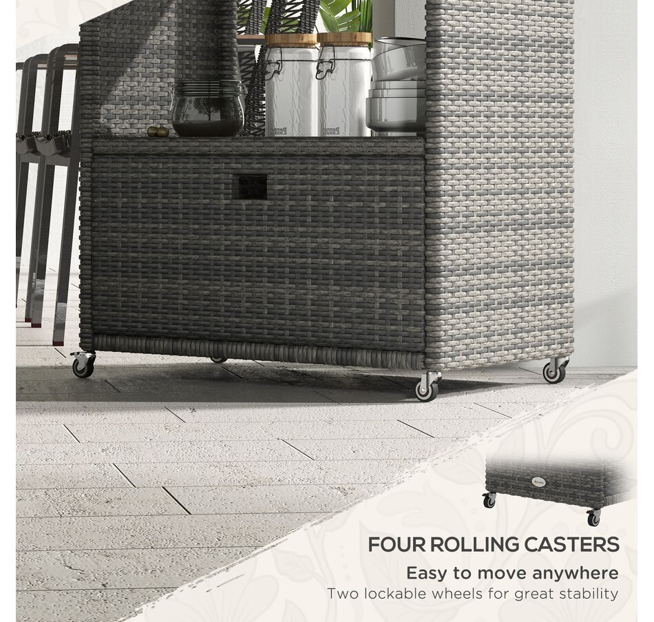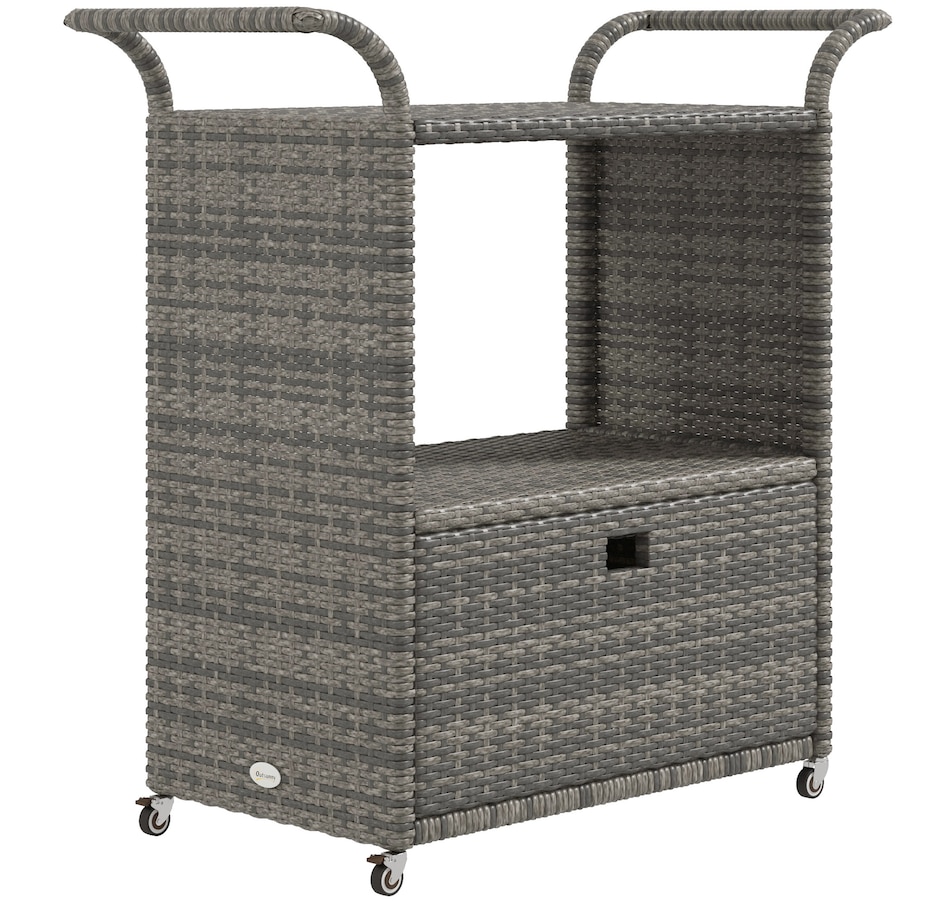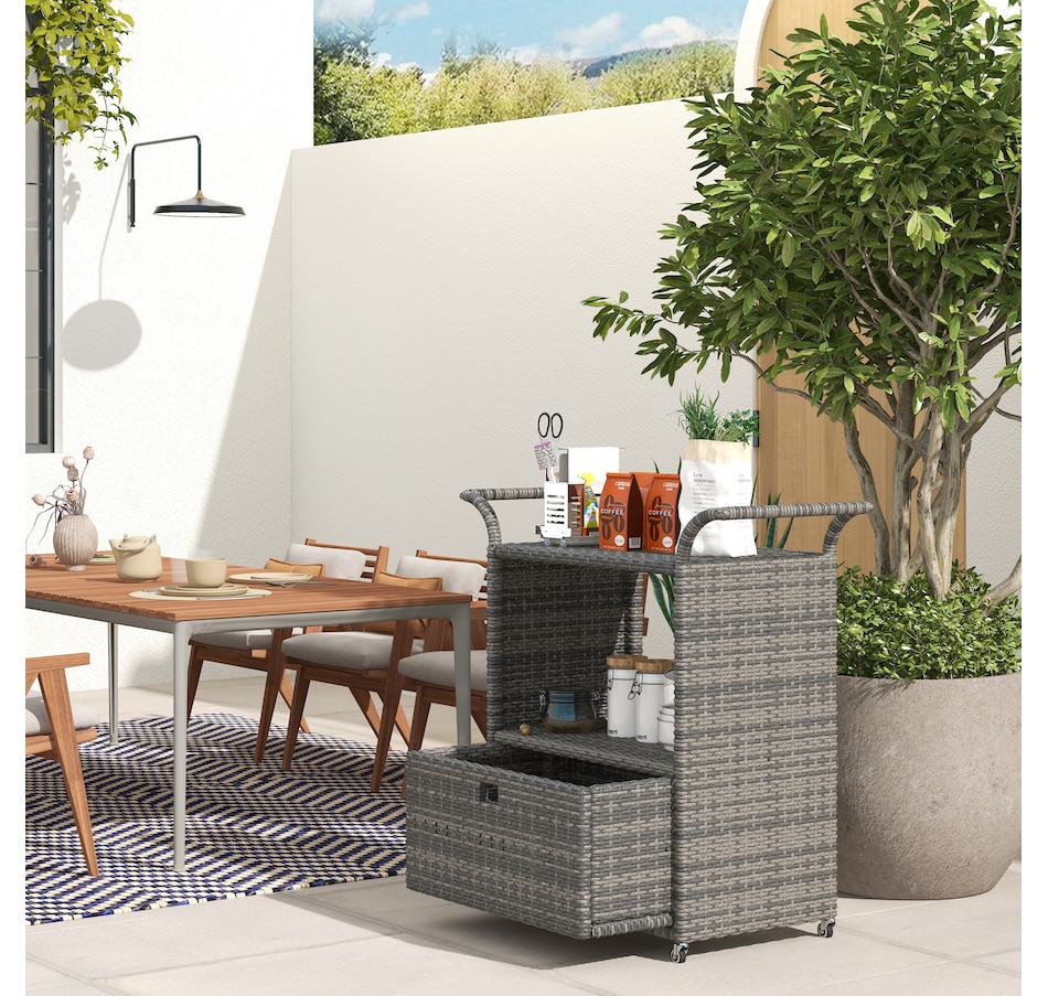 ● Compact rattan serving cart with elegant design, great for poolside party, backyard BBQ and more;