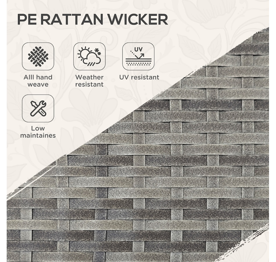 ● Constructed of powder-coated metal frame construction and wrapped with all-weather wicker material;