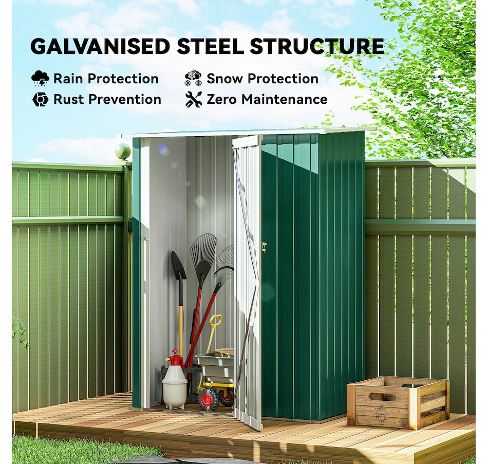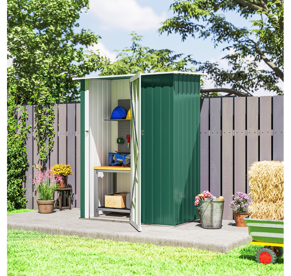 Outsunny's garden tool shed is a must-have for extending the lifespan of your equipment. With a weather-resistant metal frame, it ensures durability and protection outdoors. The sloped roof prevents liquid buildup, and pre-drilled panels save assembly time. Please note that a floor foundation is not included. Discover an excellent solution for outdoor storage with these exceptional sheds and garden buildings.Features: