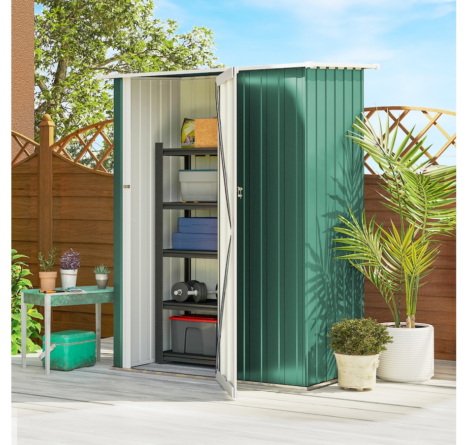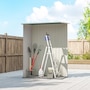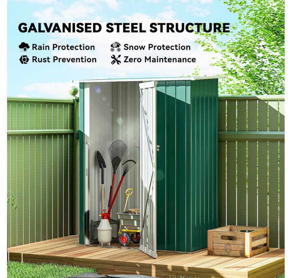 Outsunny's garden tool shed is a must-have for extending the lifespan of your equipment. With a weather-resistant metal frame, it ensures durability and protection outdoors. The sloped roof prevents liquid buildup, and pre-drilled panels save assembly time. Please note that a floor foundation is not included. Discover an excellent solution for outdoor storage with these exceptional sheds and garden buildings.