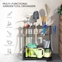 Transform your cluttered space with the Outsunny Garden Tool Organizer! Effortlessly store over 20 tools, from garden essentials to cleaning supplies, on this versatile rack. Featuring five G-hooks, six side hooks and spacious shelves, it's a great solution for keeping your garage or shed organized. Plus, its robust, rust-resistant frame ensures it stands up to the elements.Features: