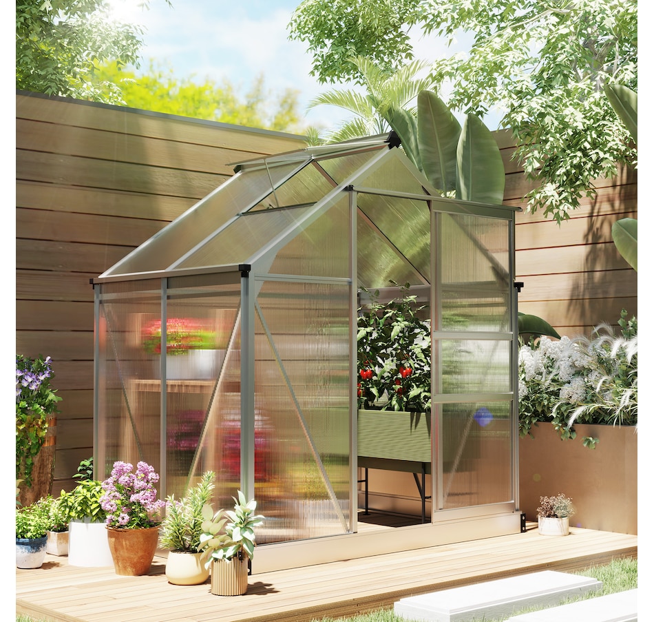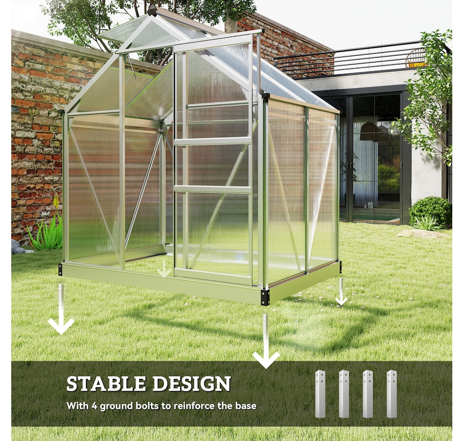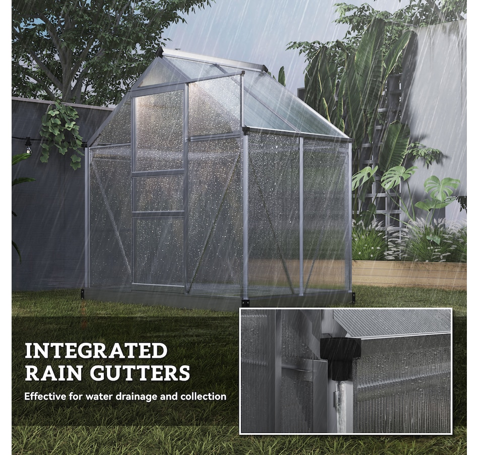 This patio greenhouse from Outsunny offers an efficient way to care for your plants year-round! The outdoor greenhouses for winter come with a top vent and single-hand push door, making ventilation and access easy. Moreover, we use high-quality materials in the backyard greenhouse, including an aluminum alloy frame and polycarbonate sheets for durability and stability outdoors. This large greenhouse is excellent for housing and growing your plant friends year-round!Features: