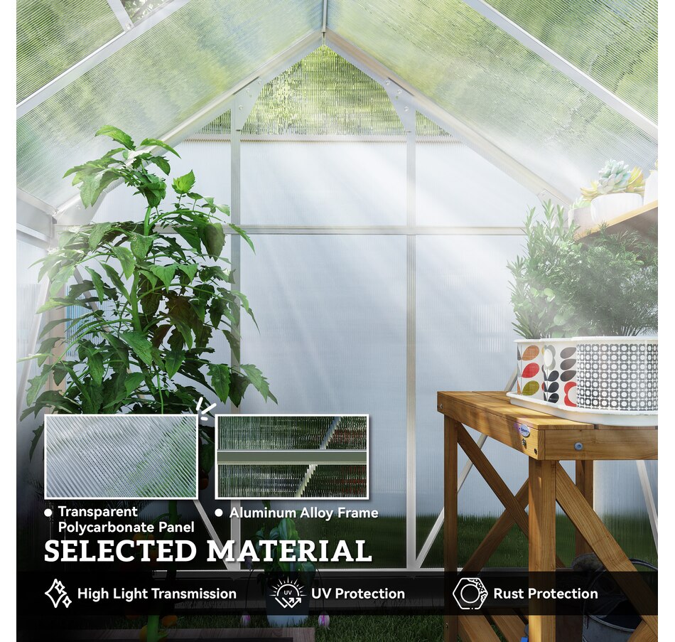 Greenhouse, Walk-In Hot House, Clear PC Board with Sliding Door