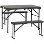 Use the lightweight folding innovation of a German-style beer table from Outsunny. This three-piece picnic table set is foldable, easy to carry, and heavy-duty. Made of a strong steel frame and waterproof HDPE, that allows 792lbs. per bench, set up seating for four. Put it on the patio for parties, by the poolside, or in the yard for picnics. Whether you're putting on an Octoberfest or just need outdoor seating this set is the solution.Features: