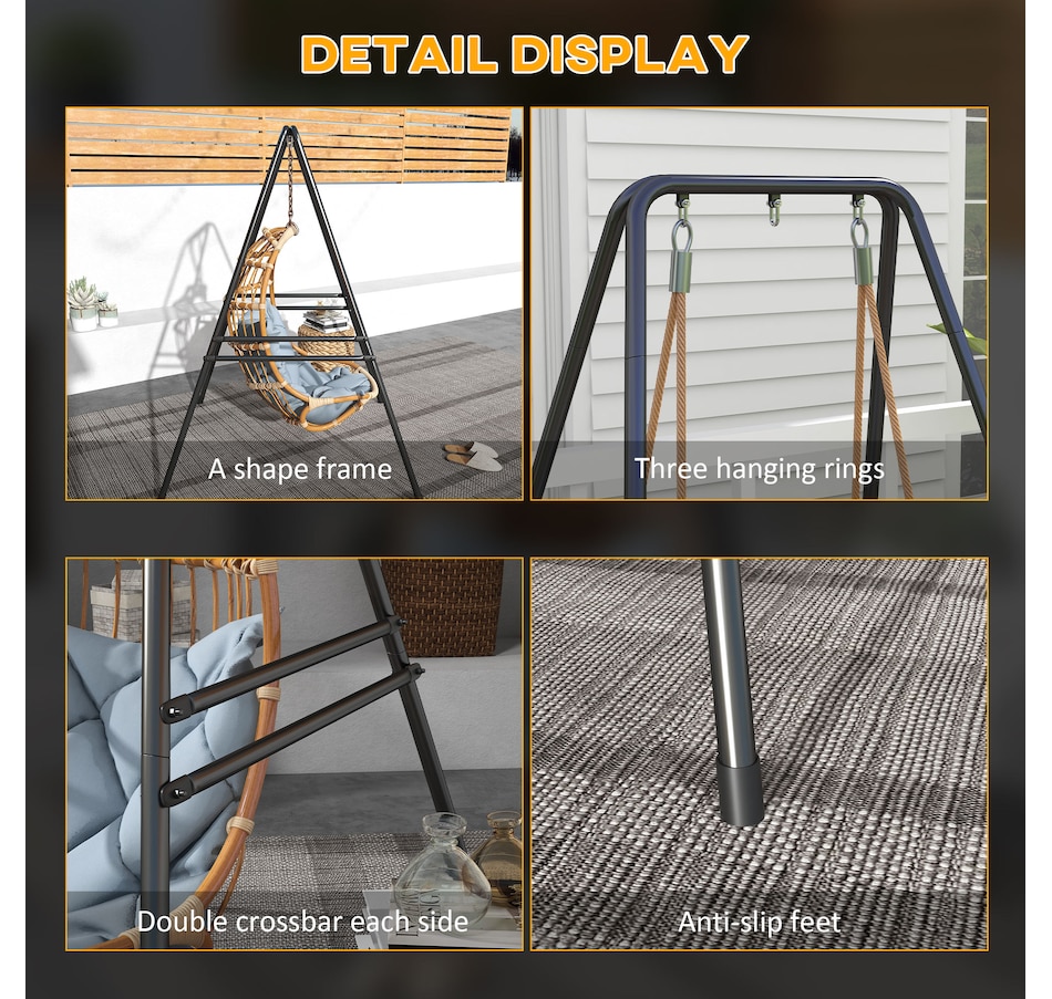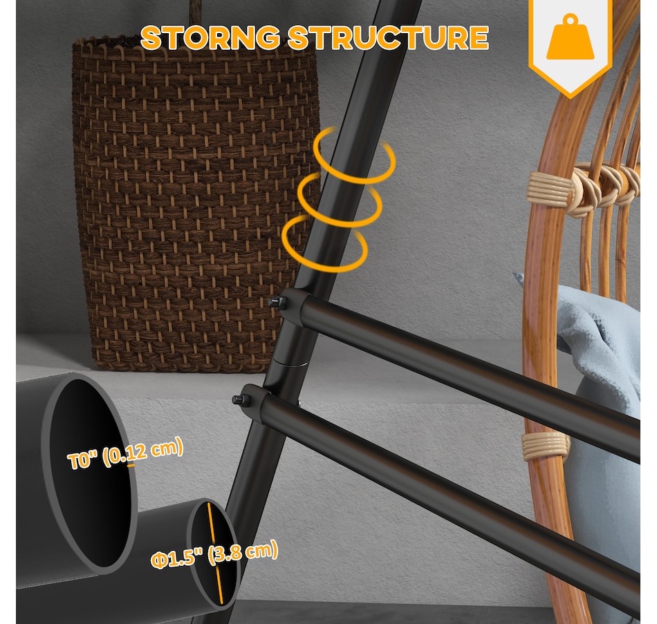 Enjoy the versatility of this Outsunny metal egg chair stand, designed to support your hammock chair without needing a suitable tree. Its weather-resistant construction makes it great for balconies, gardens, porches, bedrooms, and living rooms. A practical addition to your leisure setup!