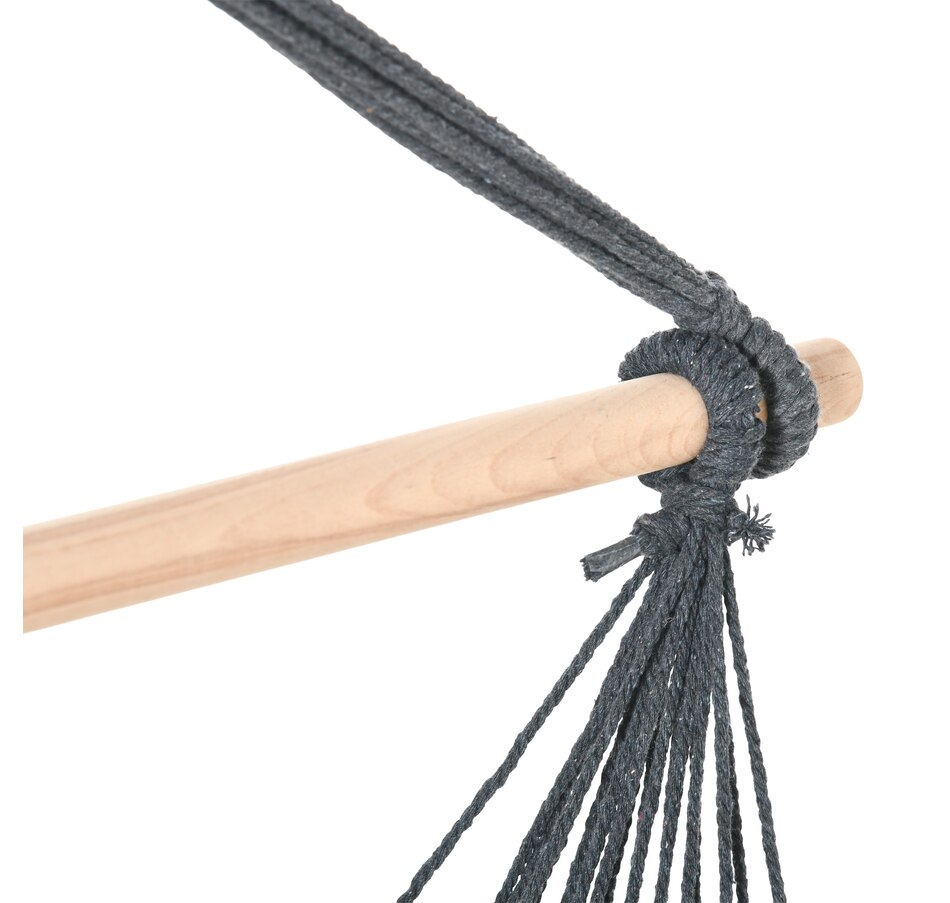 Make the most of the outside and relax comfortably for hours on end with this Hammock from Outsunny. Made from a cotton and polyester blend to ensure strength and sturdiness, looks beautiful placed anywhere. Ideal gift for friends, kids, lovers, father, mother, traveler, beach visitors, tent campers who loves hiking, camping, climbing, boating, traveling, picnic, back-yarding, or garden and yard use.