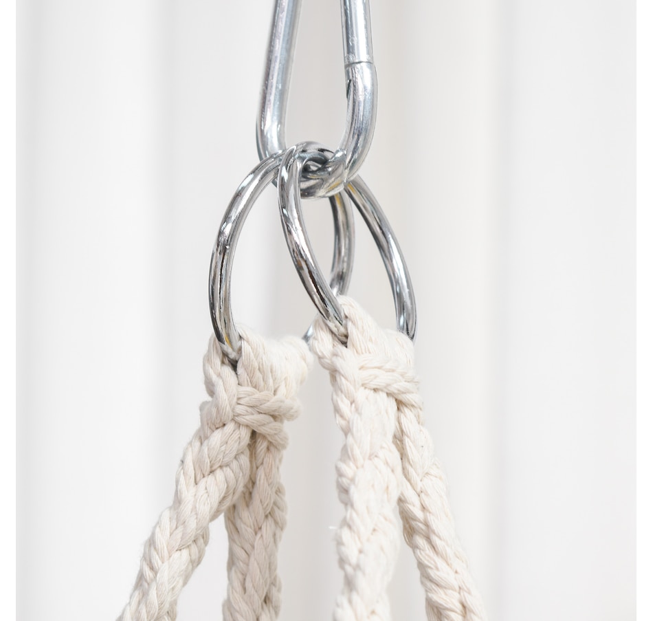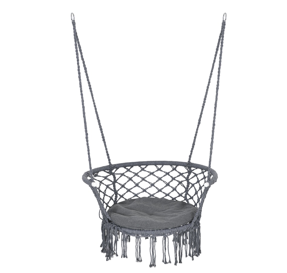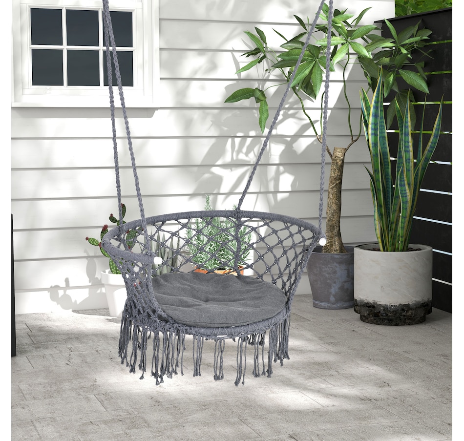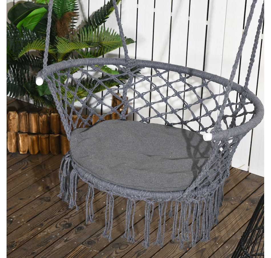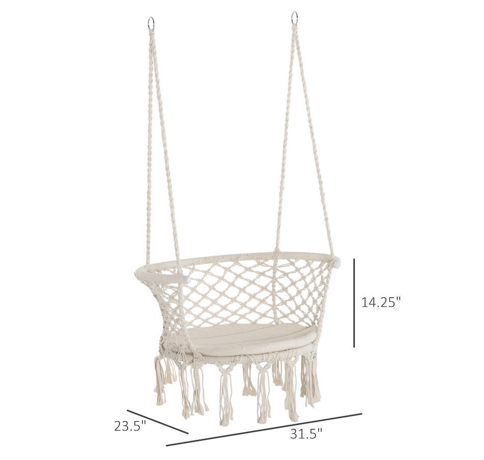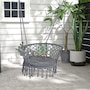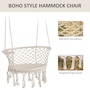 Add some elegance into your indoor or outdoor spaces effortlessly with this hanging rope hammock chair from Outsunny. Boho style chair is crafted into a spacious seat design, where the netting cotton rope forms the seat and the backrest with fringe tassels for an attractive and unique looking. Made from metal for strength and reliability, the front seat is slightly curved for comfortable sit, and with armrest offering support when needed.