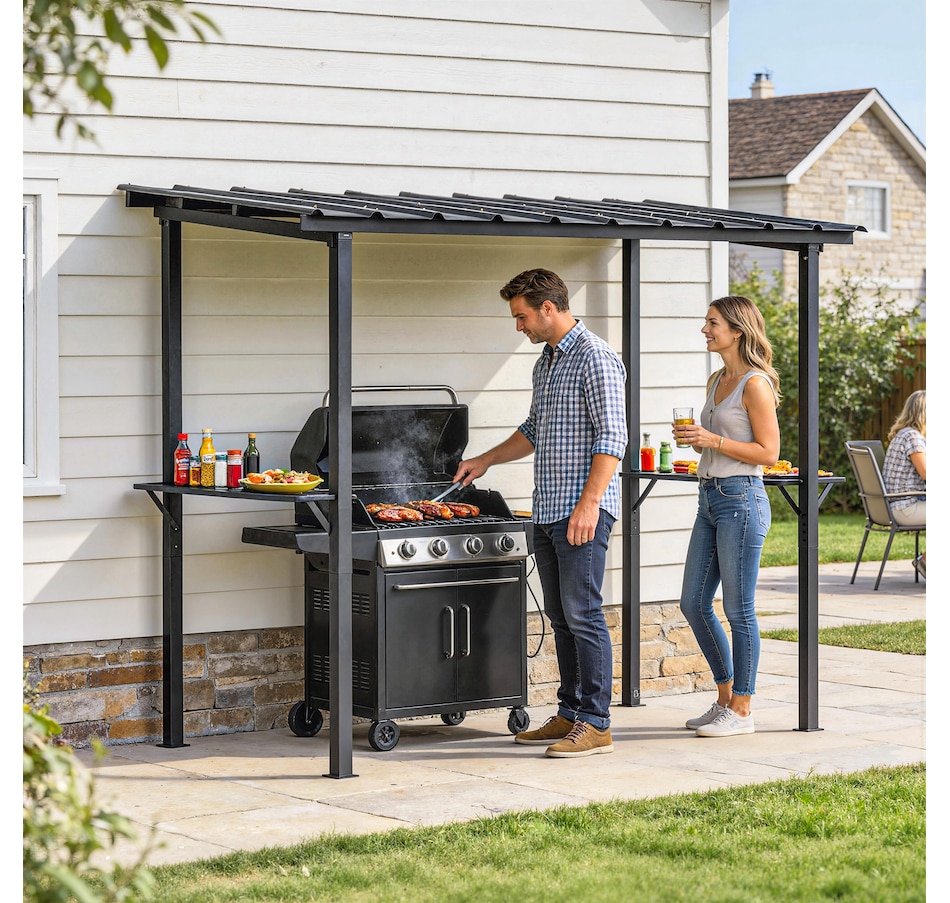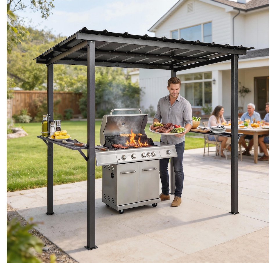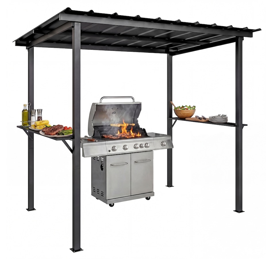 Hardtop Grill Gazebo, BBQ Gazebo with 2 Side Shelves