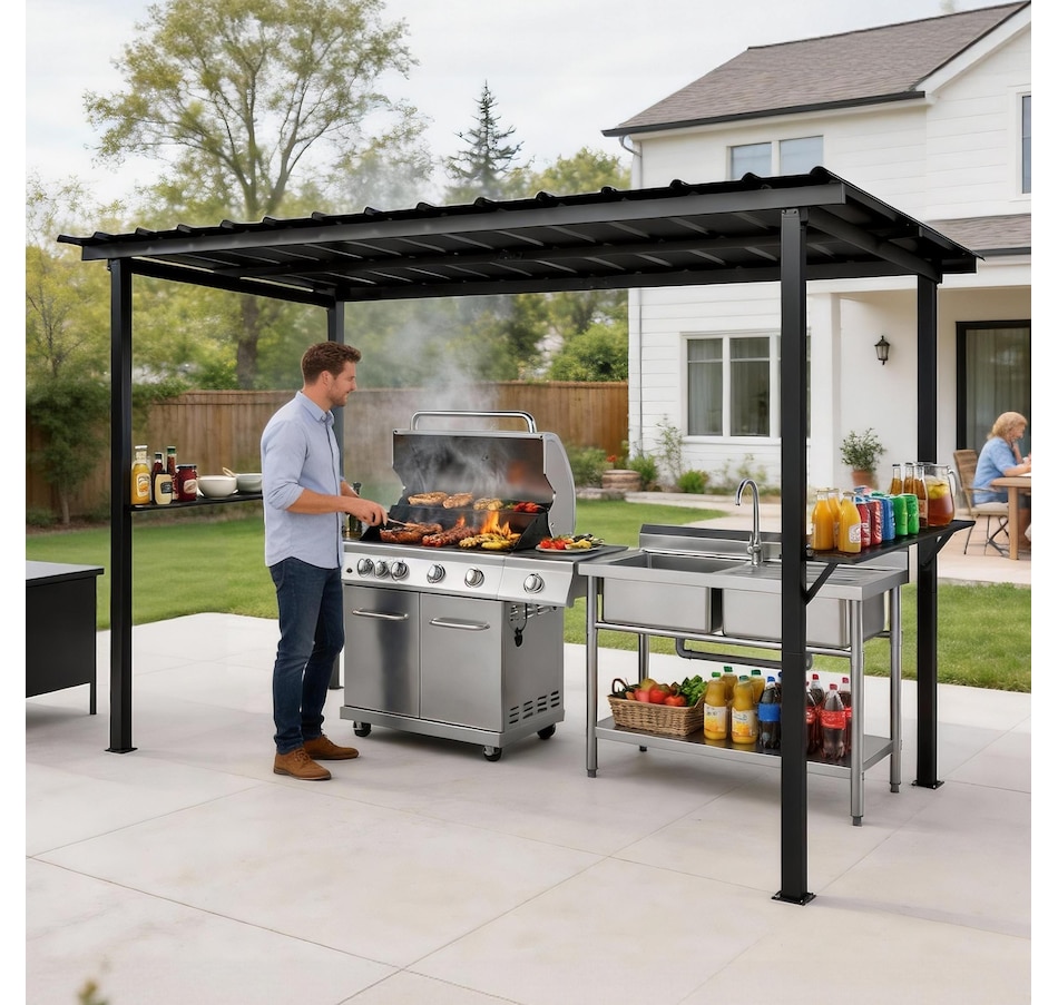 Transform your backyard into the desired gathering spot with our Outsunny bbq gazebo shelter. Whether hosting weekend barbecues or casual evening get-togethers, this outdoor gazebo offers a stylish, protected space for grilling, dining, and making memories with family and friends. Its thoughtful design ensures comfort and convenience, letting you enjoy every moment outdoors while keeping your grill safe from sun, rain, or snow.