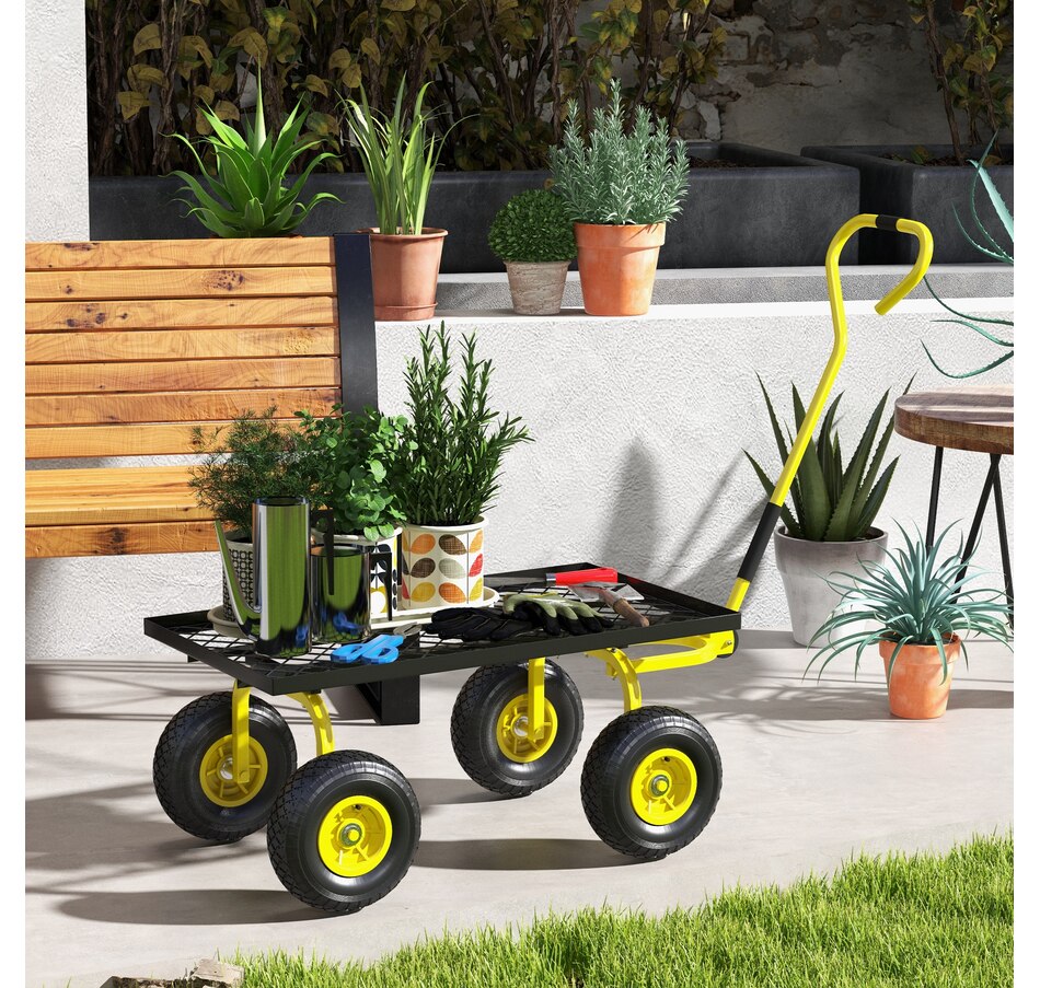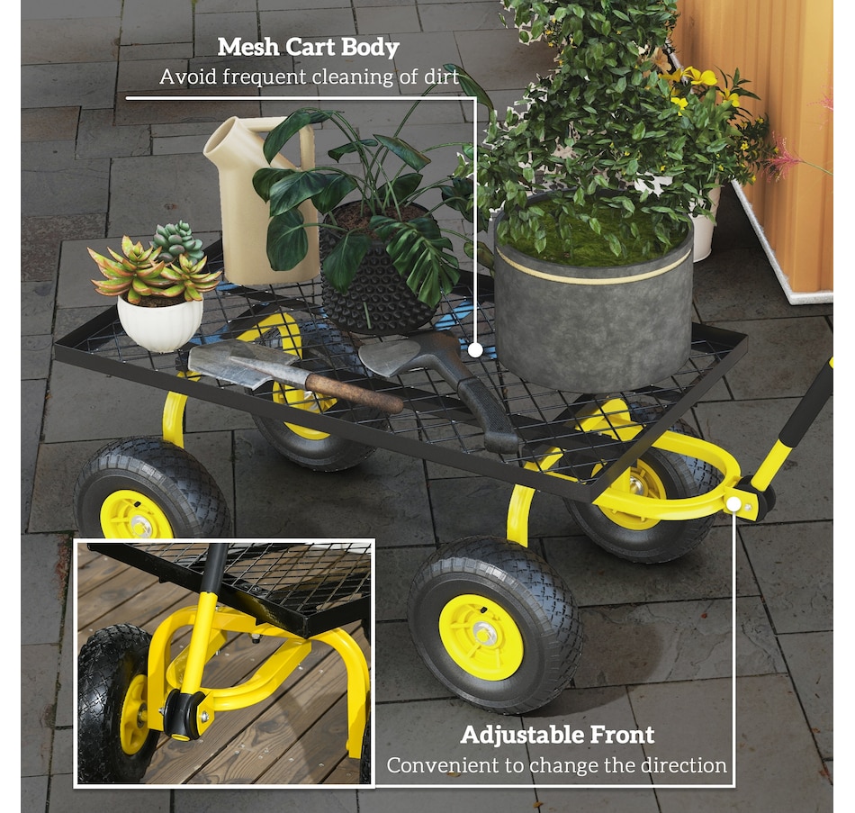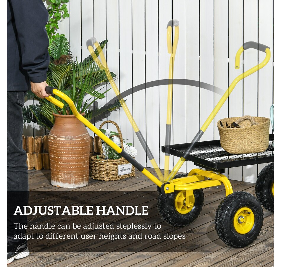This highly functional garden cart wagon allows you to effortlessly transport heavy loads during gardening tasks. It features a padded handle that ensures a comfortable grip. The rubber wheels are engineered to simplify movement, providing smooth and stable transportation across various terrains, including gravel, grass, and soil. This versatile transport cart model could be equally effective for relocating furniture or other items around your home or workplace.Features: