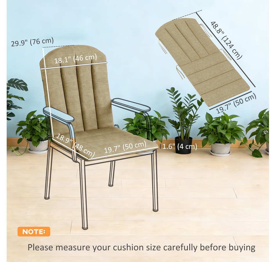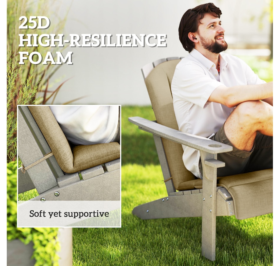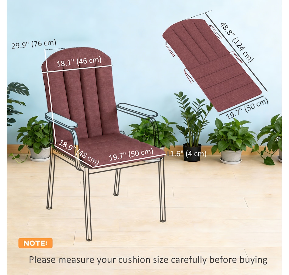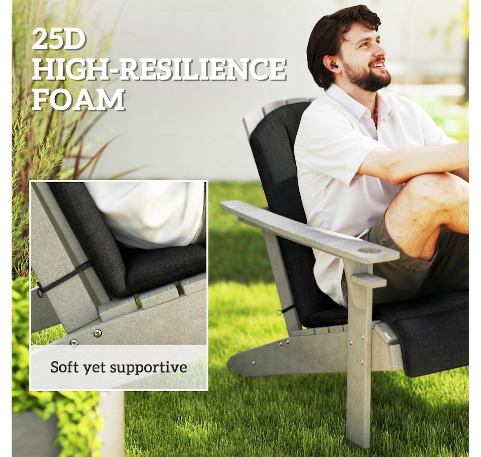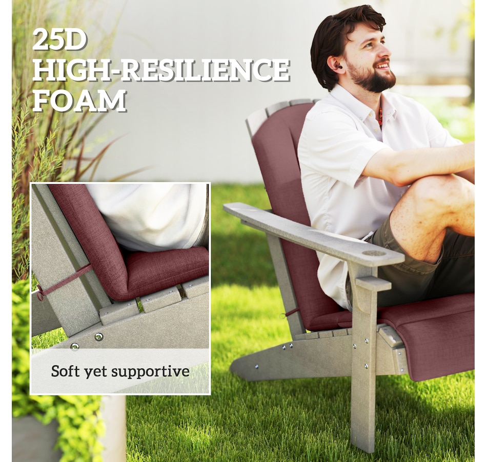 Revitalize your outdoor lounging with the Outsunny Outdoor Chair Cushion Set, including a seat and high-back cushion designed for Adirondack chairs. Enjoy enhanced comfort with yarn-dyed fabric that resists fading and light stains, while high-density sponge padding provides lasting support. Non-slip straps ensure a secure fit on any outdoor chair. Embrace relaxation, Outsunny style!