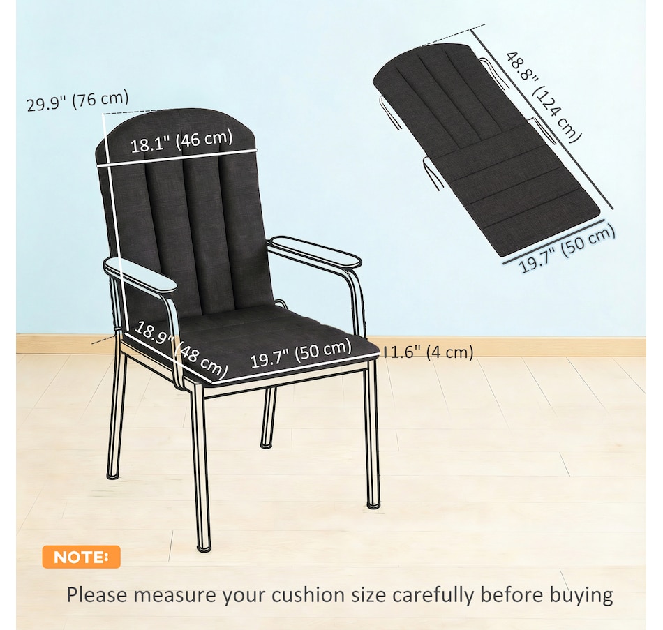 ● Seat Cushion Dimension: 19.7" W x 18.9" D x 1.6" T (50 x 48 x 4 cm);