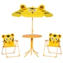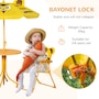 The Outsunny 4-piece kids outdoor table and chairs set is specially designed for kids, gives them their very own outdoor seating area to eat meals, play games, and more. A matching umbrella is included to provide shade during the summer and on otherwise sunny days. With its beautiful and colourful pattern design, this children table and chair set makes a great addition to any backyard setting. Your kids will love having furniture that' made especially with them in mind!