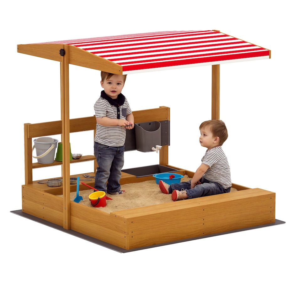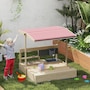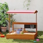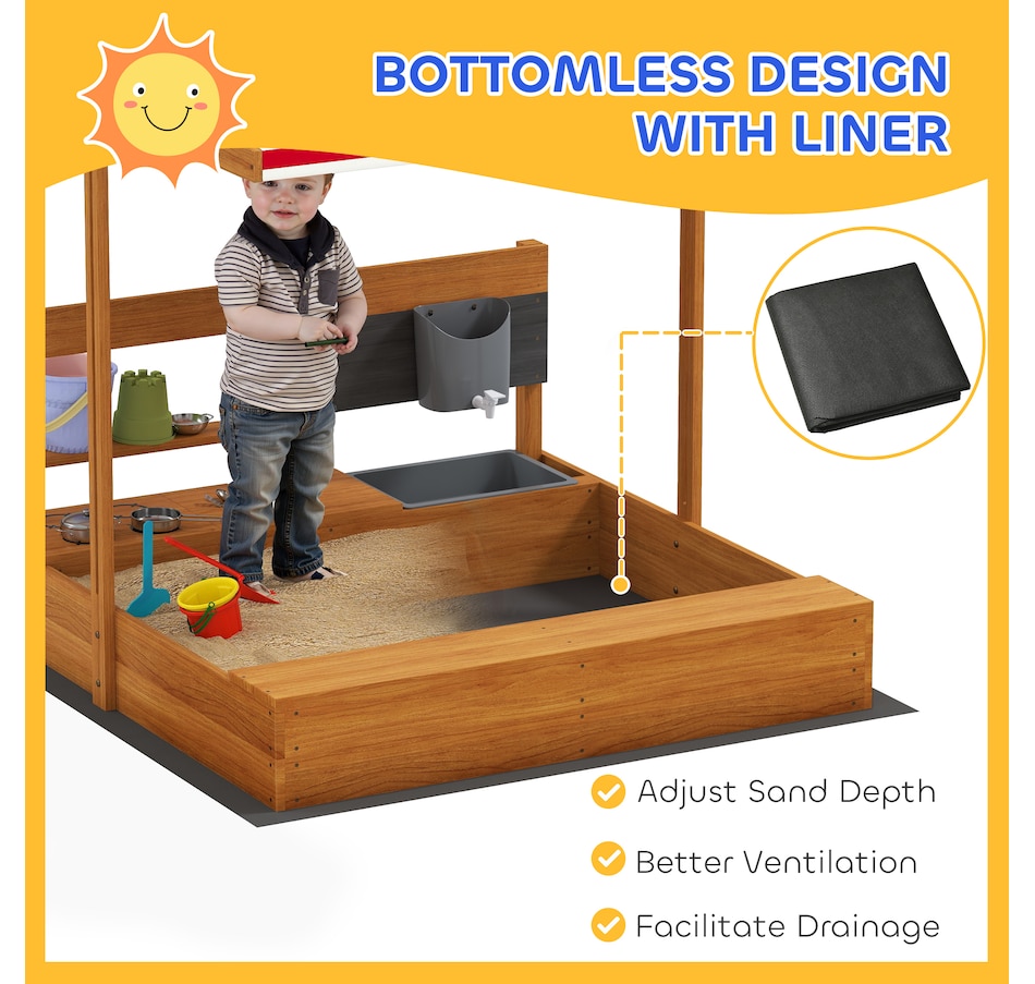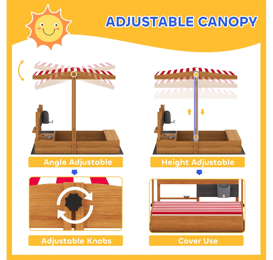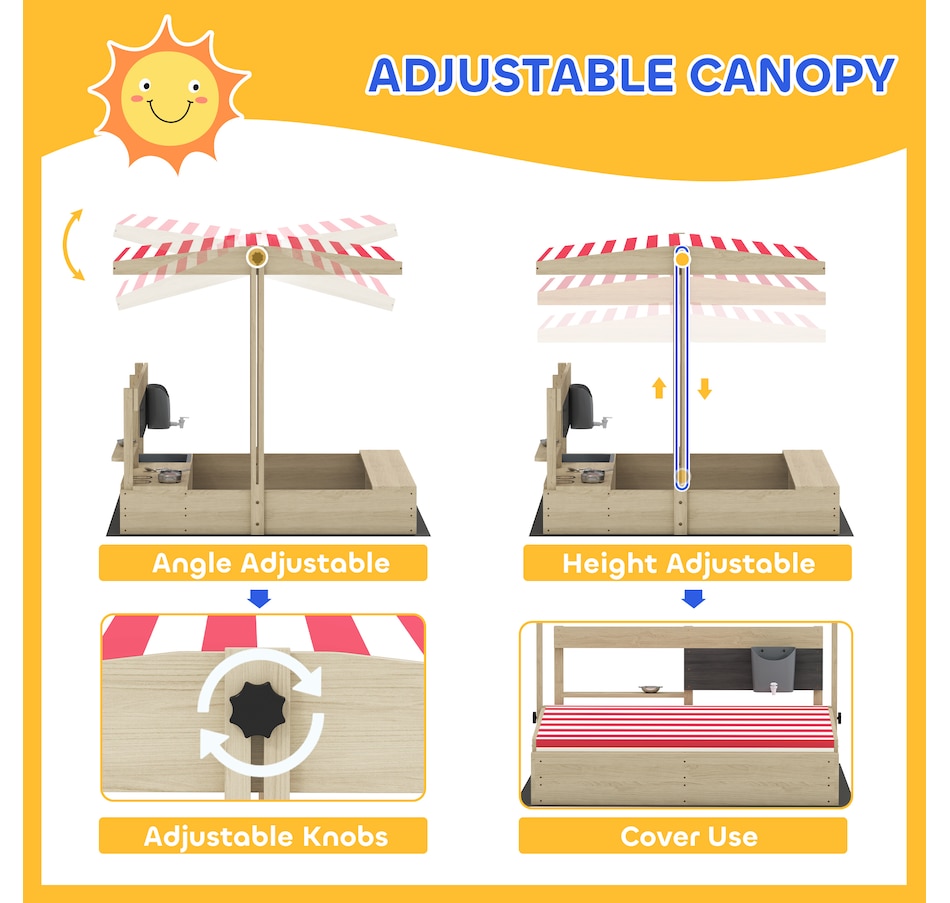Kids Sandbox with Cover, Wooden Sand Box with Adjustable Canopy