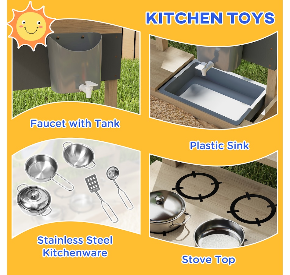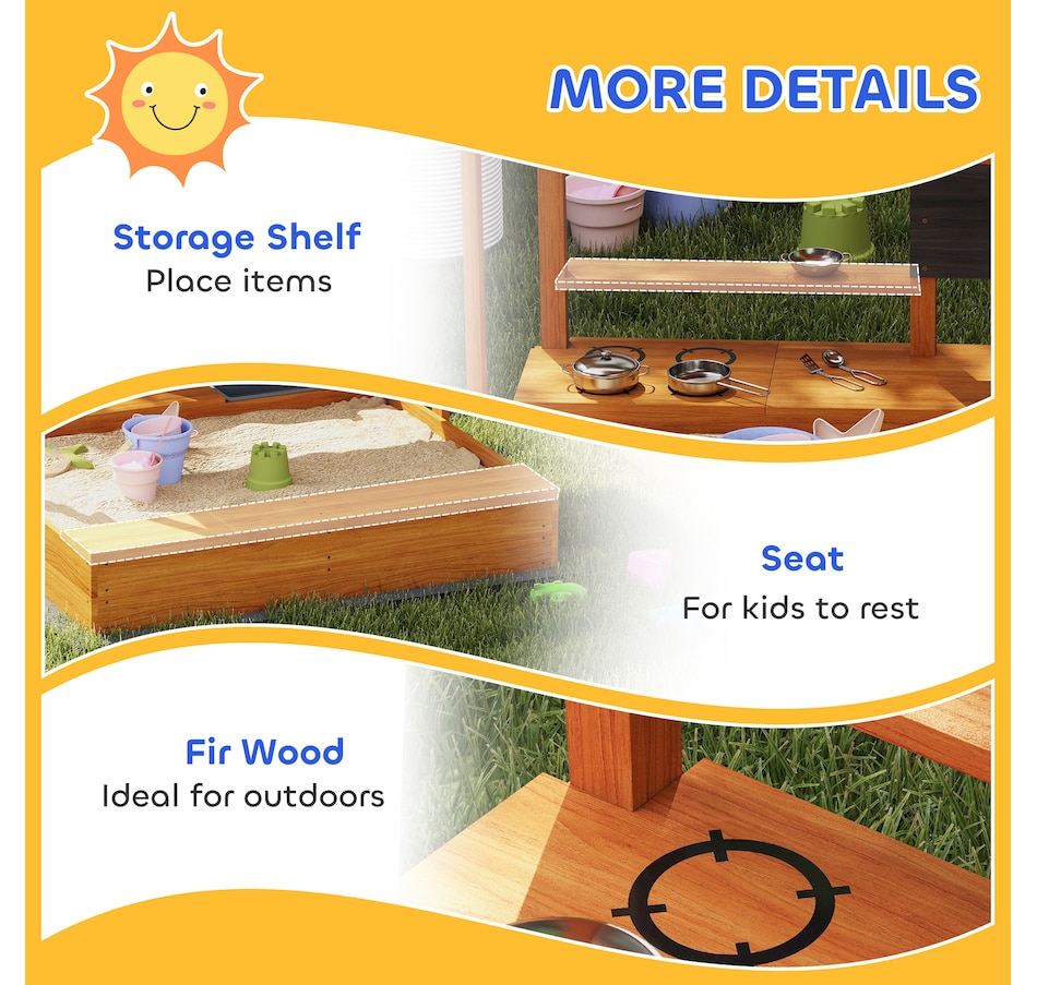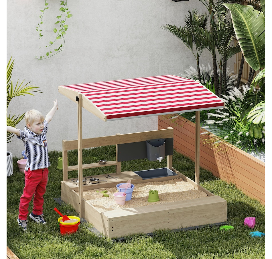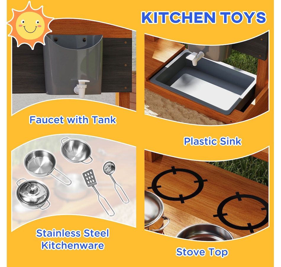 This sandbox from Outsunny lets kids play, dig and make sandcastles in a safe space, thanks to the adjustable canopy providing shade in hot weather, and keeping out the light rain. Its bottomless design and removable liner stop sand from getting everywhere, keeping your place clean. It's large enough for two children, so they can enjoy with friends. The kitchen toys spark kids' imagination and inspire playtime and learning. A great addition to the backyard activities.
