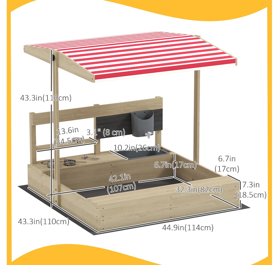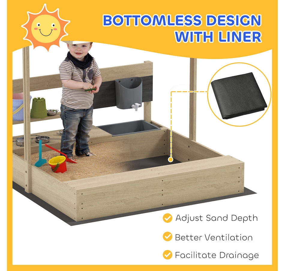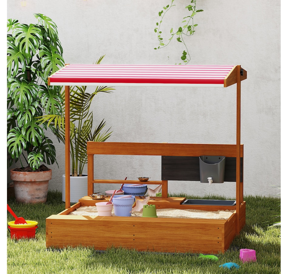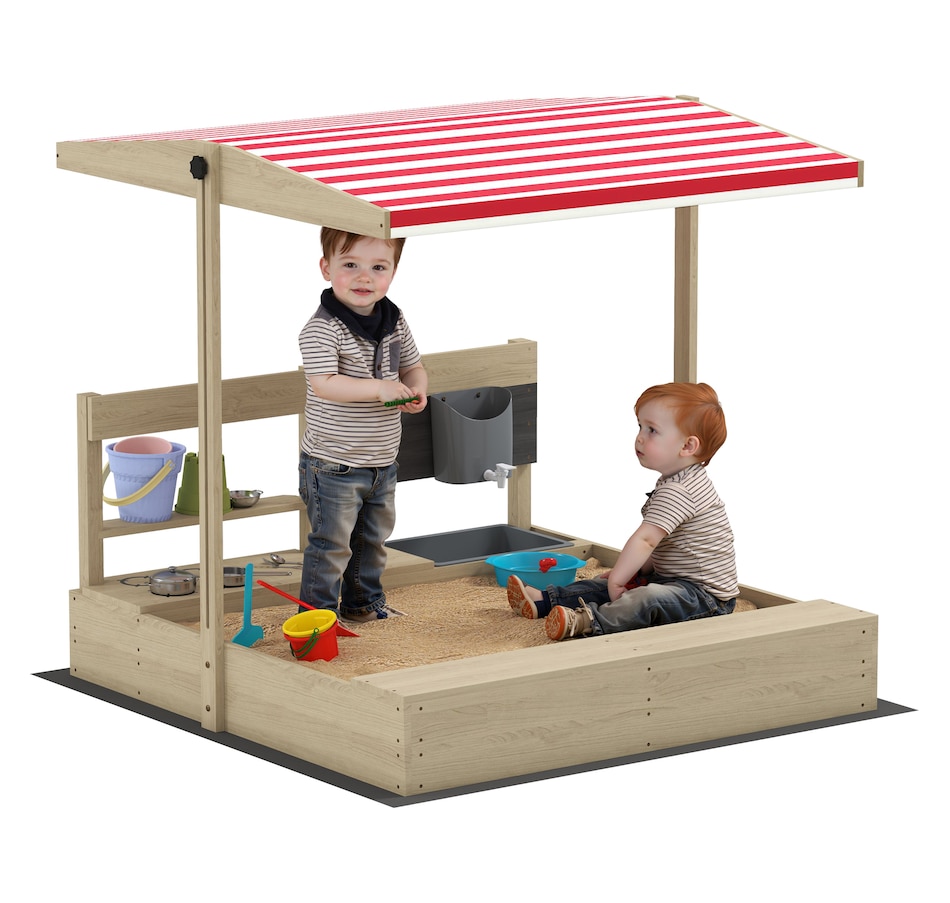 This sandbox from Outsunny lets kids play, dig and make sandcastles in a safe space, thanks to the adjustable canopy providing shade in hot weather, and keeping out the light rain. Its bottomless design and removable liner stop sand from getting everywhere, keeping your place clean. It's large enough for two children, so they can enjoy with friends. The kitchen toys spark kids' imagination and inspire playtime and learning. A great addition to the backyard activities.