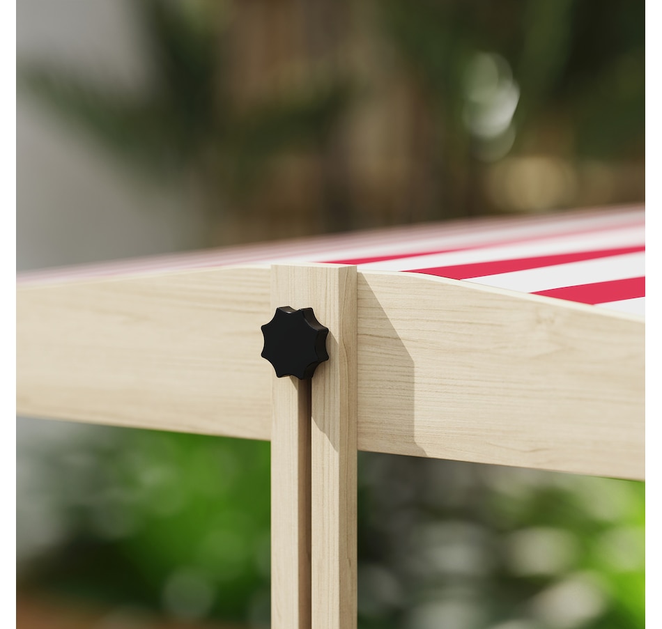 â—Ź Material: Fir wood, non-woven fabric liner, polyester fabric canopy, PP, Stainless Steel