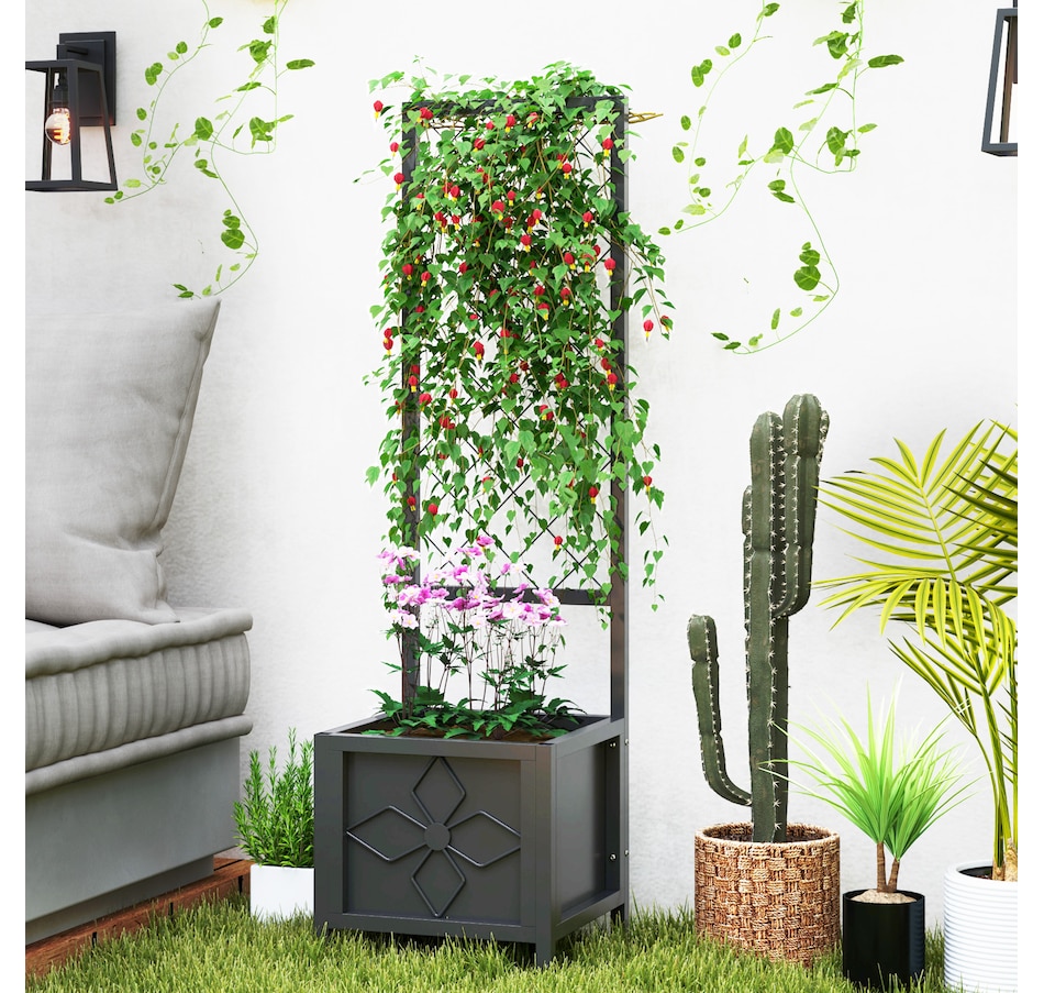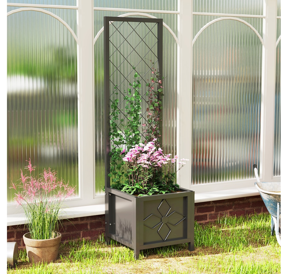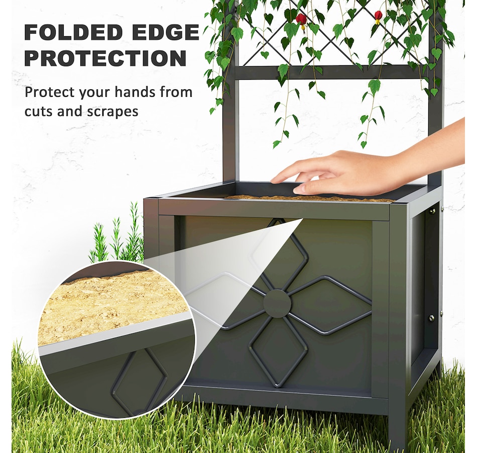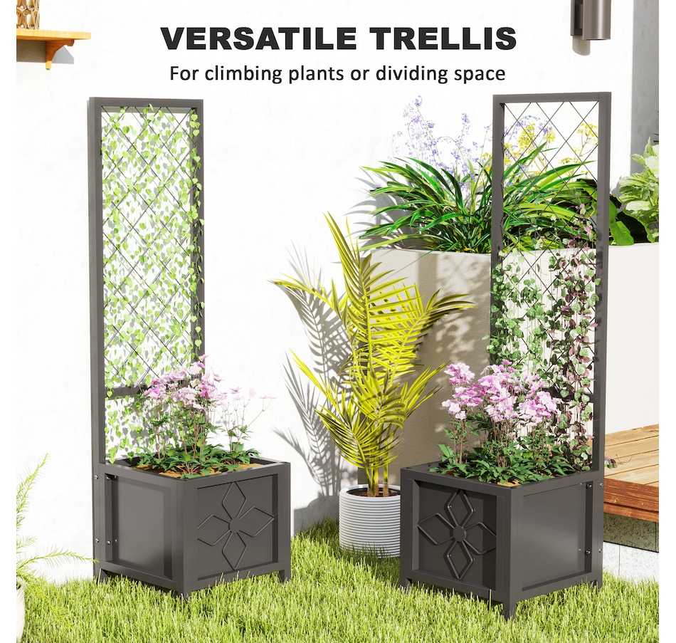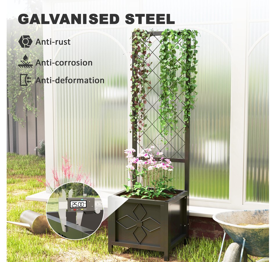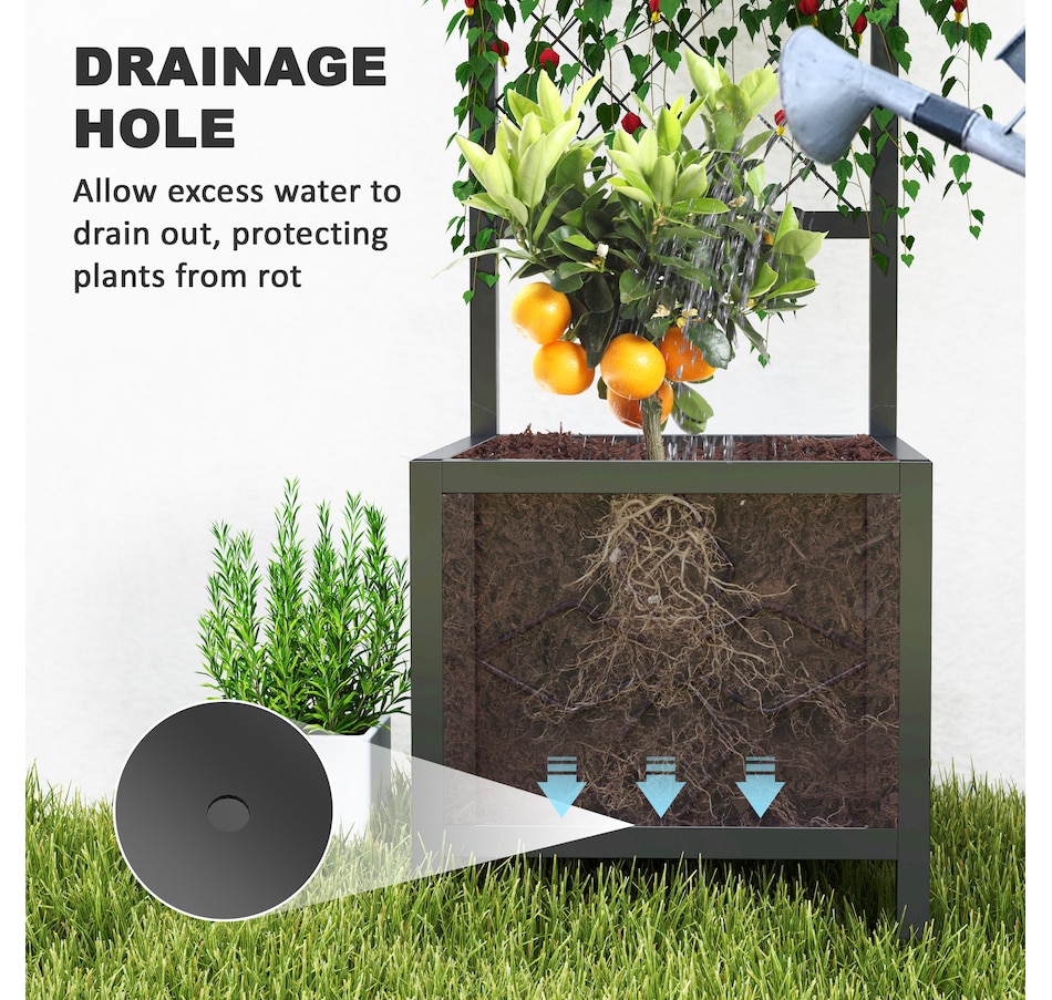 Transform your garden with the Outsunny Raised Garden Box, crafted from galvanized steel to resist rust and deformation. Designed with a built-in trellis, it's suitable for supporting climbing plants, while a drainage hole ensures healthy roots by preventing waterlogging. Whether you're using it as a versatile planter box or a stylish privacy screen, the raised bed adds both functionality and flair to any outdoor space, making it the great choice for gardening enthusiasts!Features:
