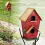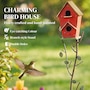 Outdoor Bird House with Pole, 57" Metal Birdhouse Decor, Red
