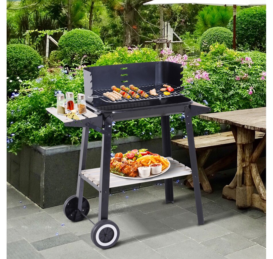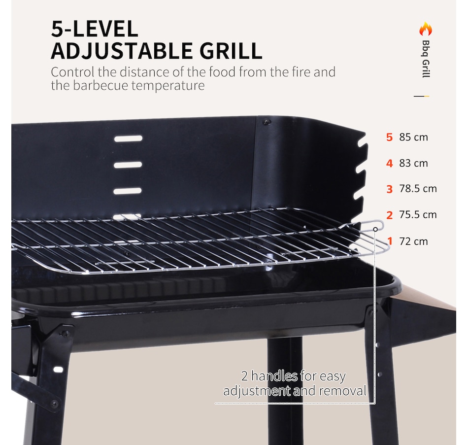This charcoal bbq grill from Outsunny is perfect for cooking up delicious barbecue food with friends when the sun comes out to shine. Made from durable and high-quality metal with an enamel coating to finish, it is heat resistant up to 650℃ for quick and even cooking of food, with the spacious size of the pan giving you plenty of room for cooking large quantities of food. Height adjustable to five different levels, the grill pan can be raised or lowered to give you complete cooking control.