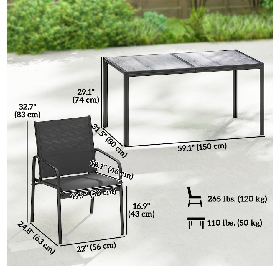 ● Weight Capacity: 264 lbs. (120 kg)(chair), 110 lbs. (50 kg)(table);