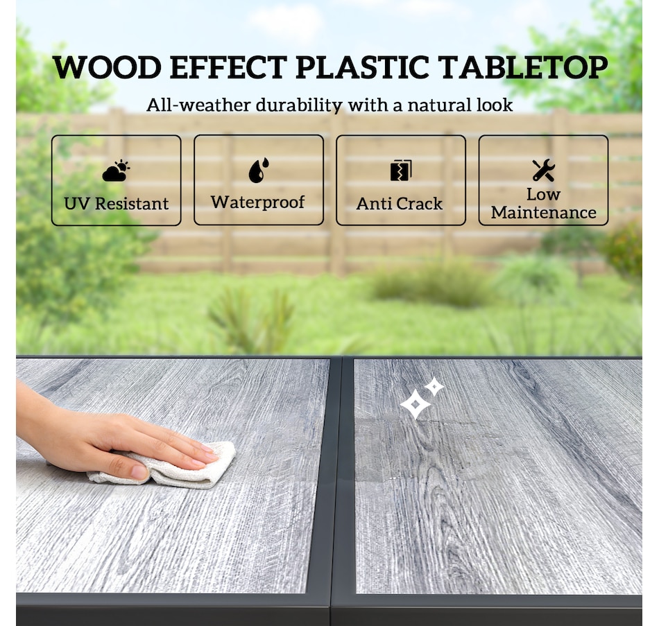 Outdoor Dining Set for 6, Faux Wood Patio Table and Chairs, Black