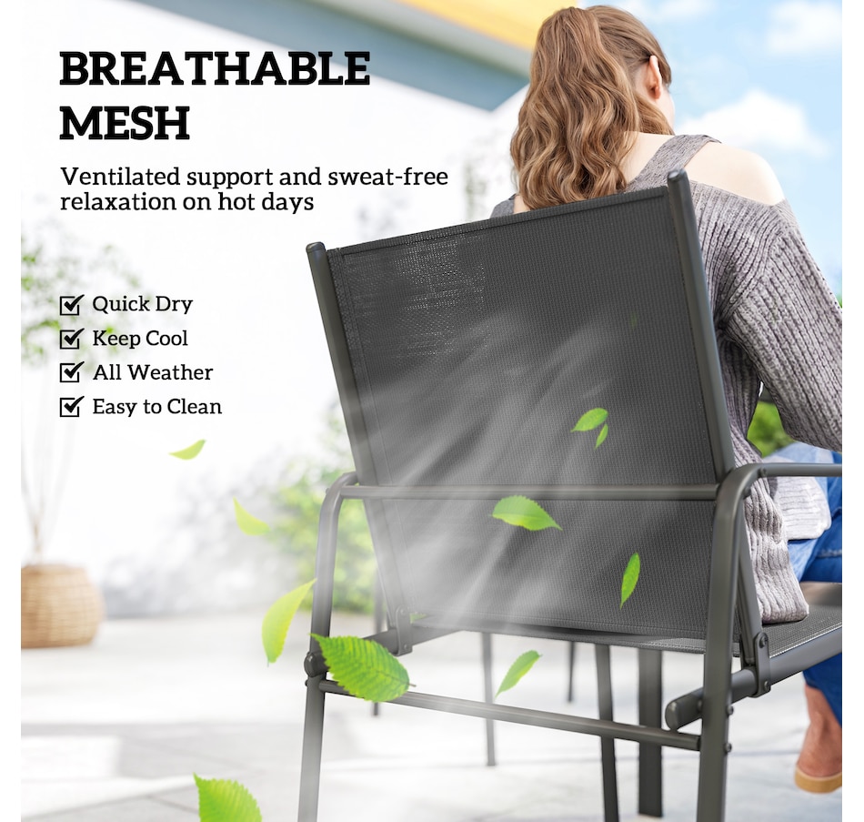 ● Breathable mesh chairs for cool, comfortable seating even on hot days;