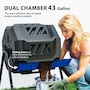 Outdoor Dual Chamber 360° Rotating Composter 43 Gallon Blue