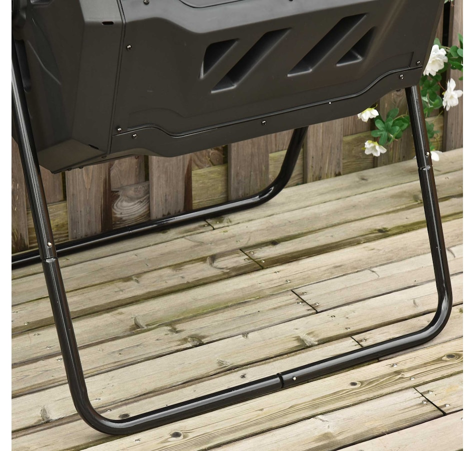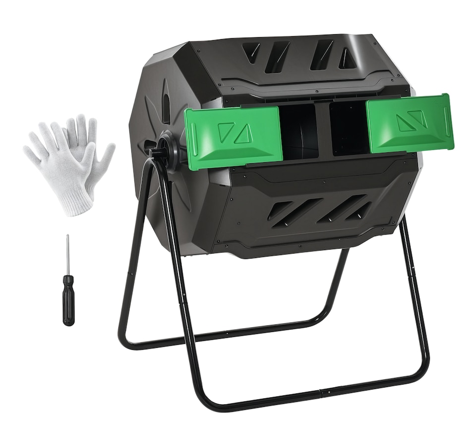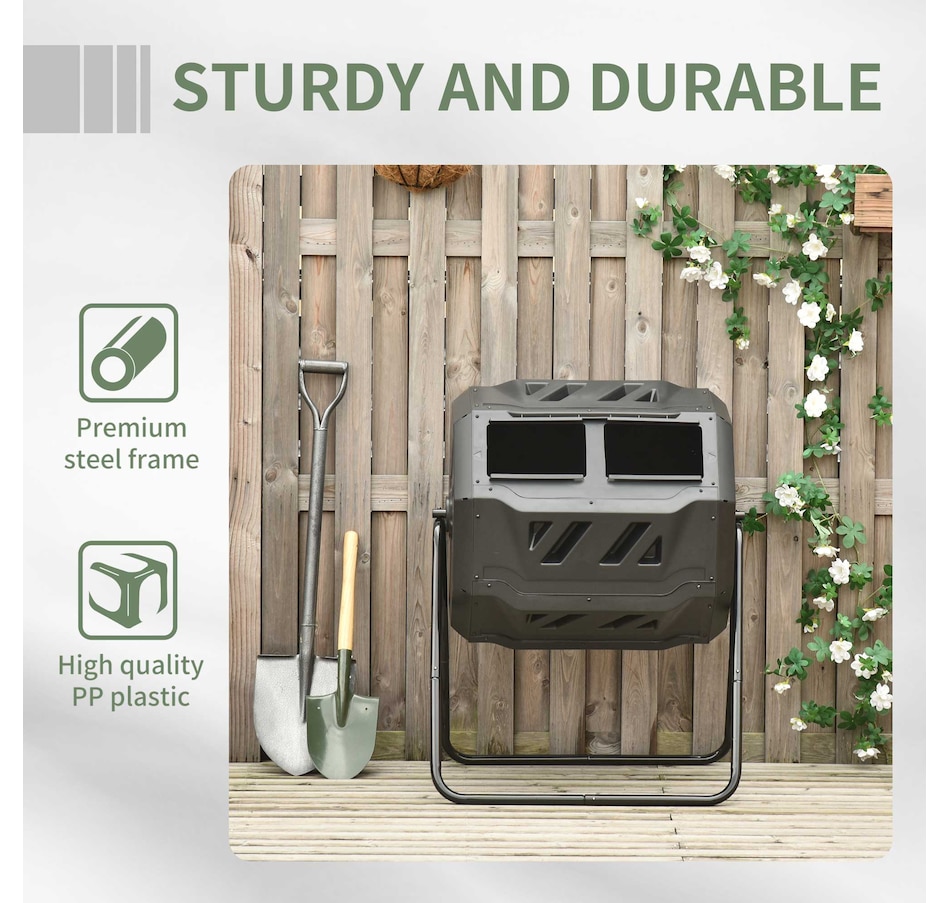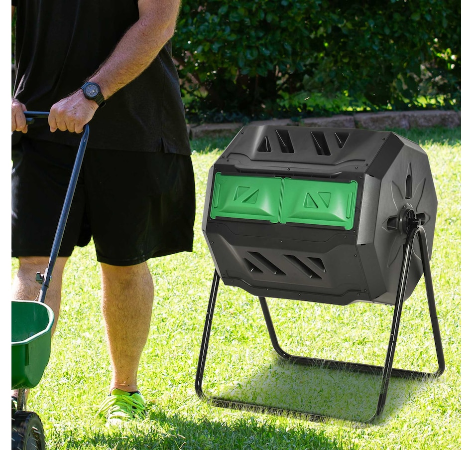 Close the sliding door and roll out this Outsunny compost tumbler. Let garden refuse and kitchen scraps fill up with twin-chamber. The manure has been produced from a side, you can also add new ingredients to another. The constant exchange of materials on both sides creates a cycle, and you will get a sufficient natural mixture for your backyard garden. The food composter machine gives your plants the nutrient-dense fertilizer they crave, and you can watch your garden bloom like never before.