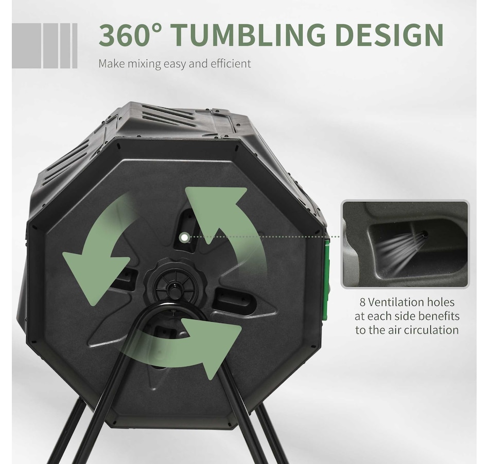 ● 360° tumbling design lets your hands-free, avoiding digging and mixing compost pile by hands;
