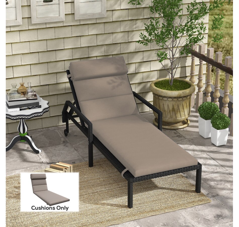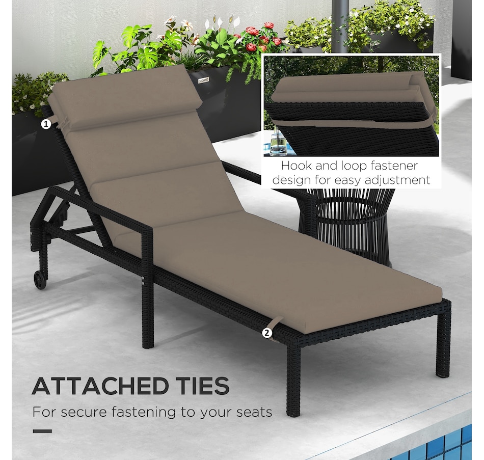 The Outsunny outdoor seat cushion for lounge chair is a helpful accessory for anyone looking to enhance their outdoor seating experience. This cushion includes comfortable seat, back and headrest pads, featuring fixing ties to ensure a secure fit. Two types of fillings provide moderate support and comfort for hours of relaxation. Our outdoor chaise lounge cushion is great for refreshing your outdoor oasis instantly.