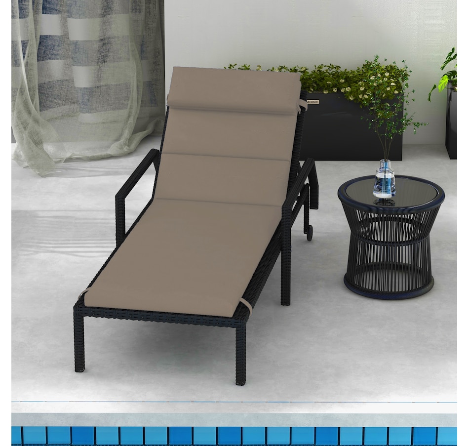Outdoor Lounge Chair Cushion with Back Ties, Dark Grey