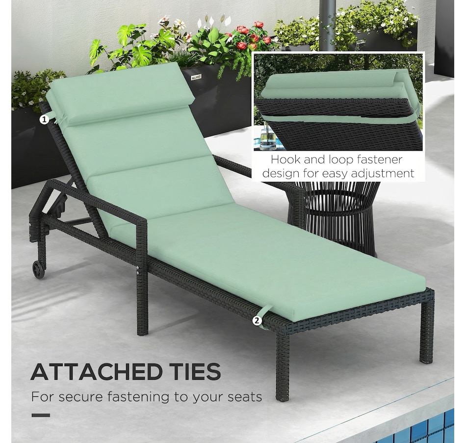The Outsunny outdoor seat cushion for lounge chair is a helpful accessory for anyone looking to enhance their outdoor seating experience. This cushion includes comfortable seat, back and headrest pads, featuring fixing ties to ensure a secure fit. Two types of fillings provide moderate support and comfort for hours of relaxation. Our outdoor chaise lounge cushion is great for refreshing your outdoor oasis instantly.