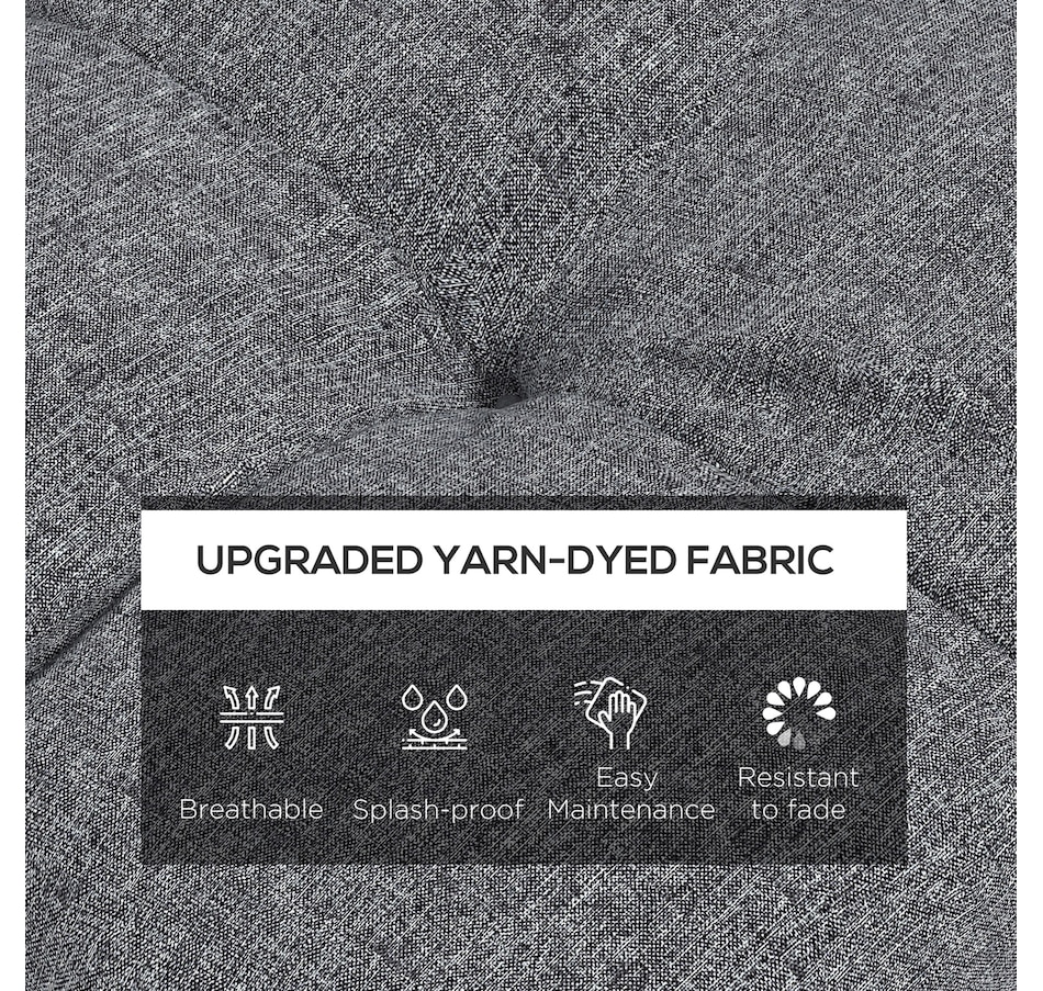 ● Yarn-dyed cover is resistant to fade, light stains and splashes of water;