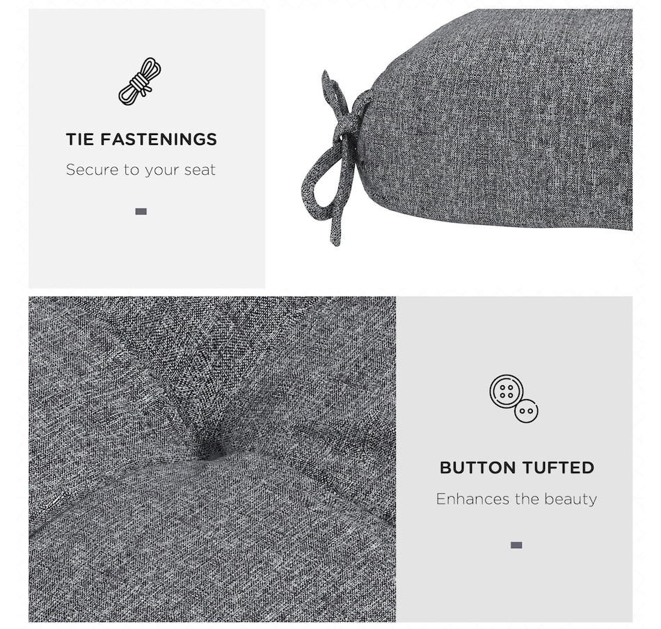 The Outsunny lawn chair cushions set is a helpful accessory for anyone looking to enhance the outdoor seating experience. It not only provides enhanced comfort, but also adds a touch of elegance. Each cushion in the set is expertly crafted with thick filling to ensure maximum comfort and relaxation. Comfort and style in your garden the easy way. Our outdoor seat cushions are great for refreshing your home instantly.