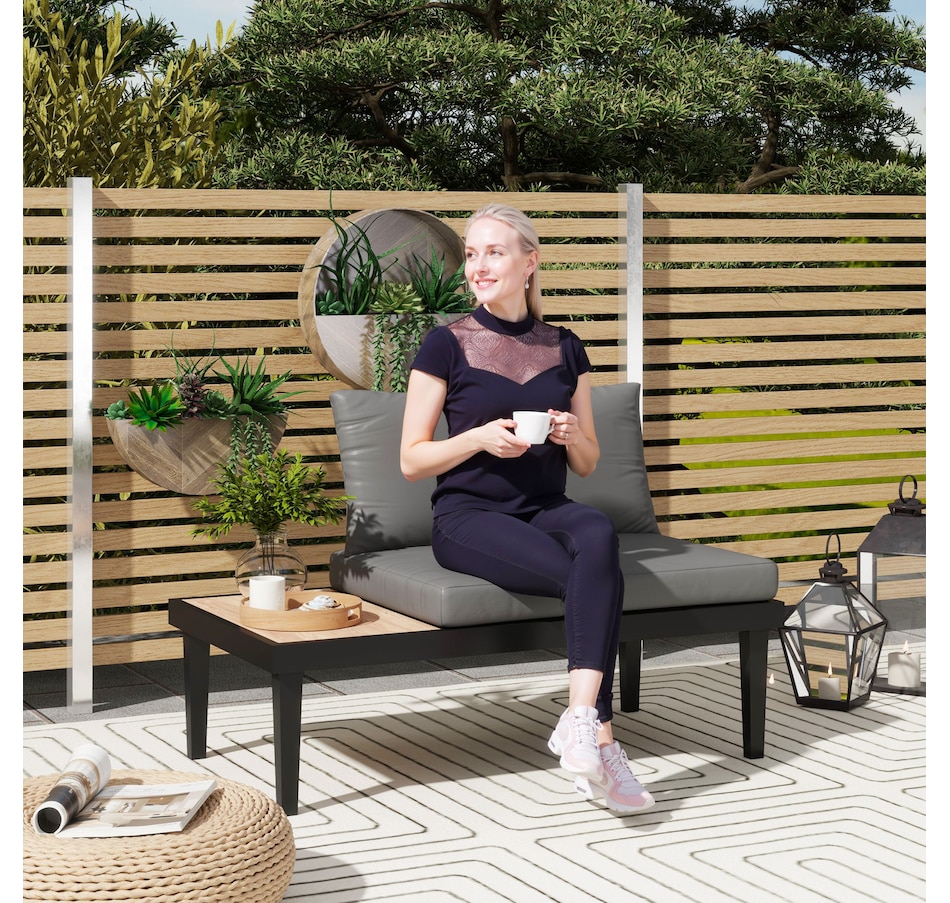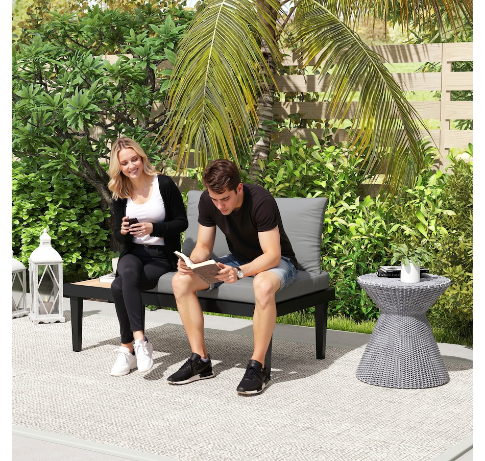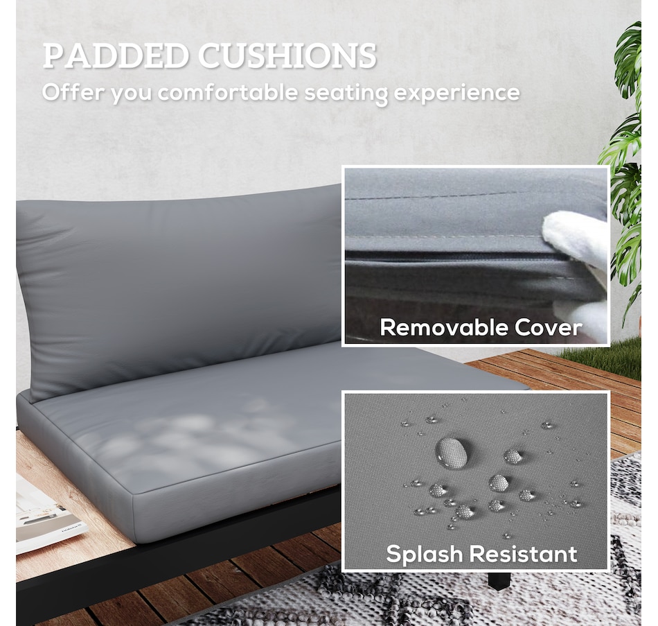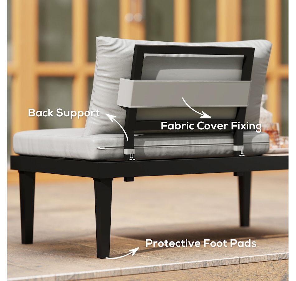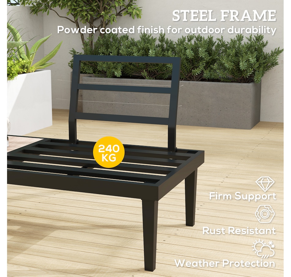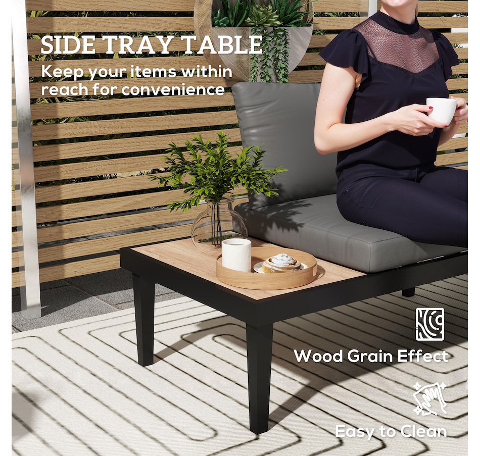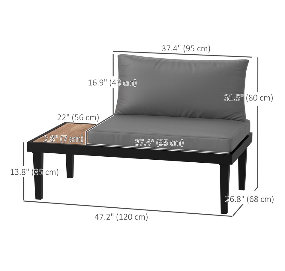 Make those wonderful times outdoors even better than before with the armless outdoor sofa from Outsunny. Using a steel frame, the balcony sofa provides underlying strength for outdoor use. Thick padding cushion on the balcony couch offers a comfortable seating experience. A convenient side tray table with wood grain effect keep essentials within reach. A minimal yet stylish addition to your balcony, porch, deck, or patio.