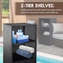 ● Two upper storage shelves are for storing clean towels, water bottles, robes, and more