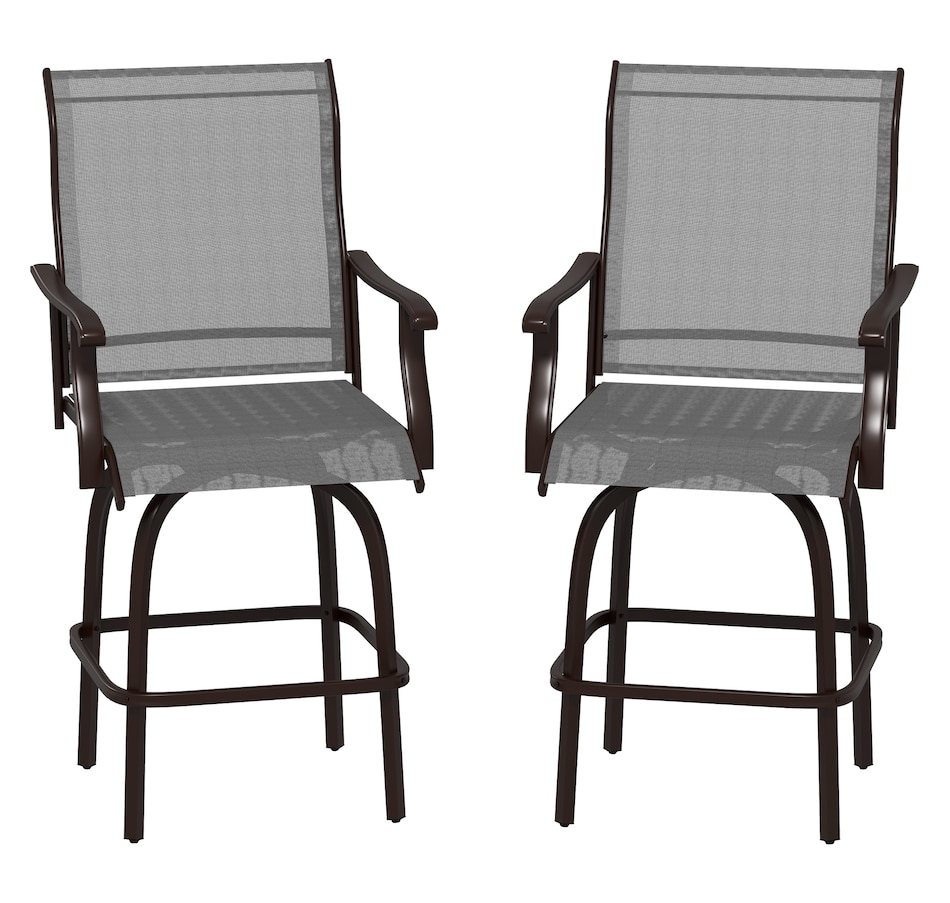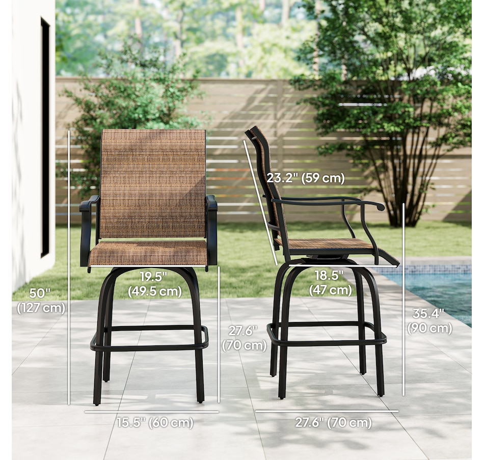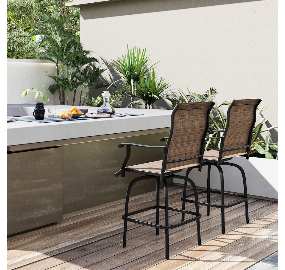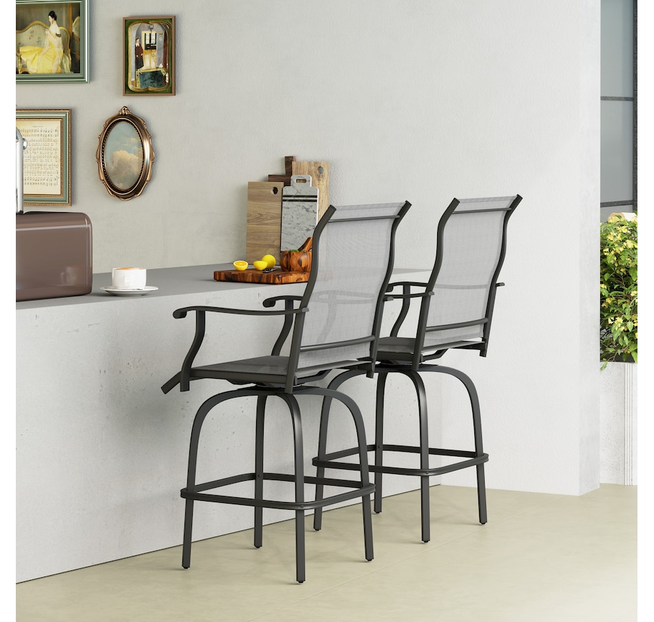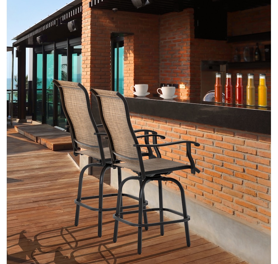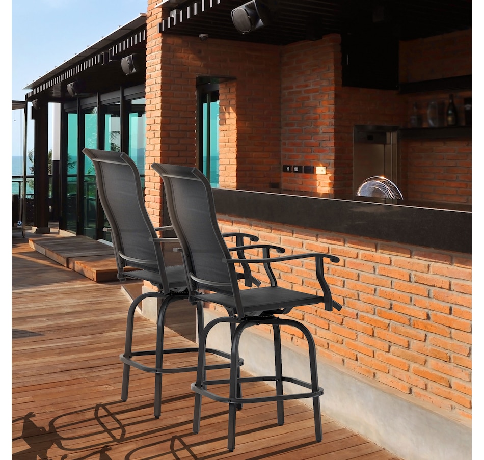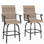 Outdoor Swivel Bar Stools Set of 2 with High Back Curved Armrests