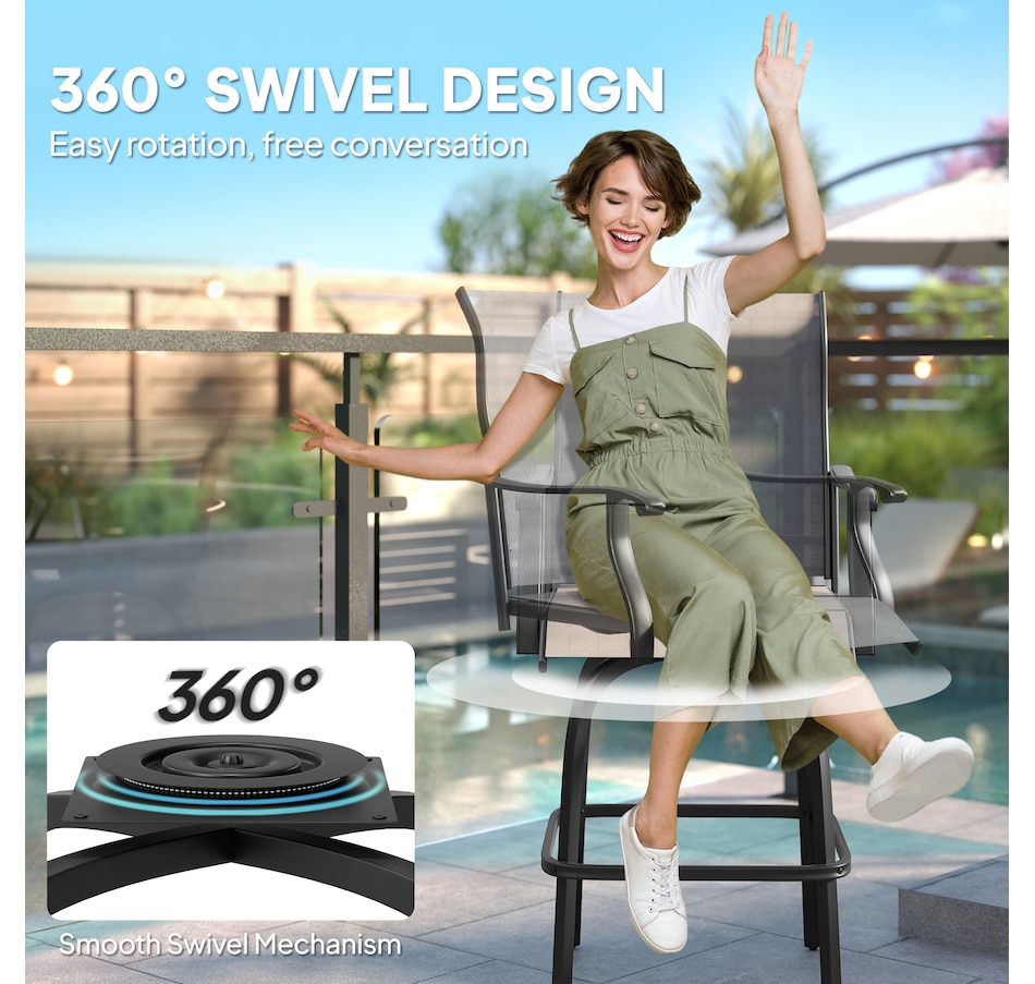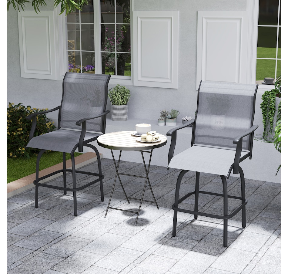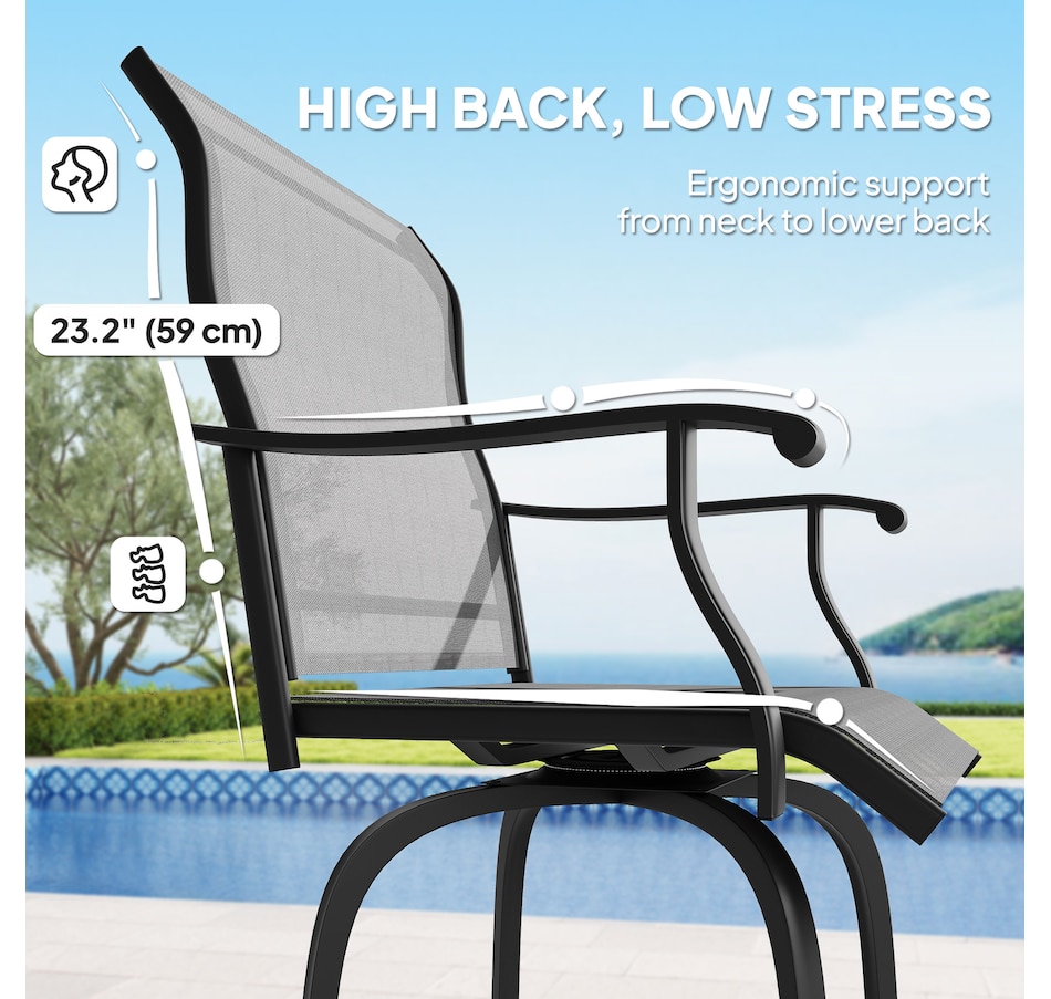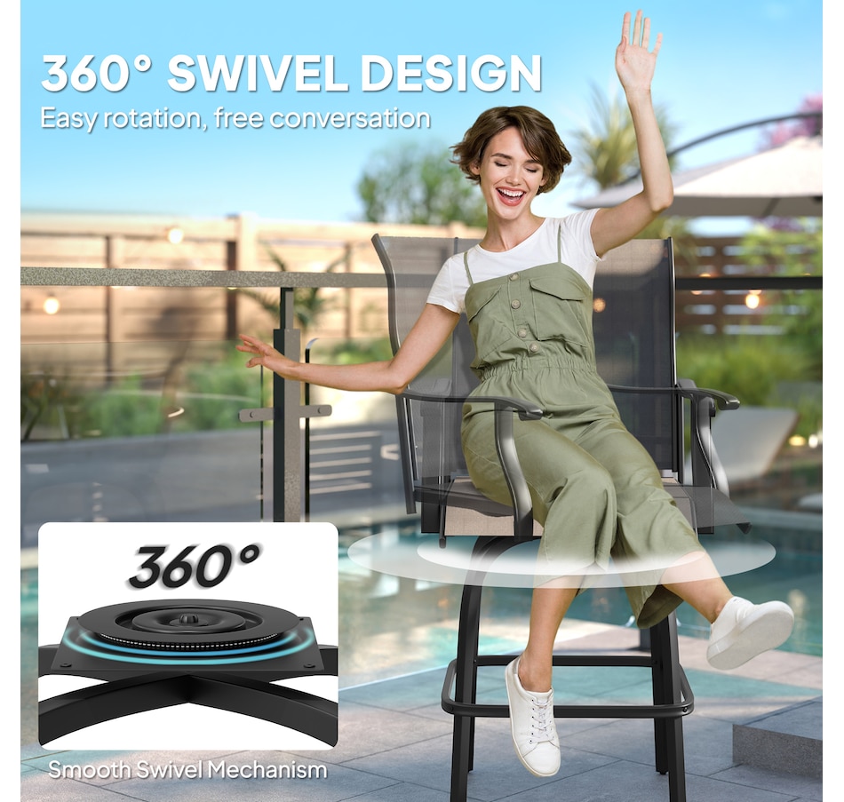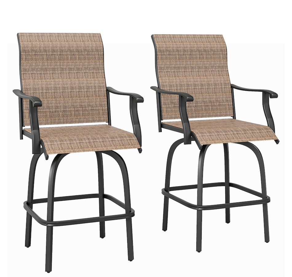 Outdoor Swivel Bar Stools Set of 2 with High Back Curved Armrests