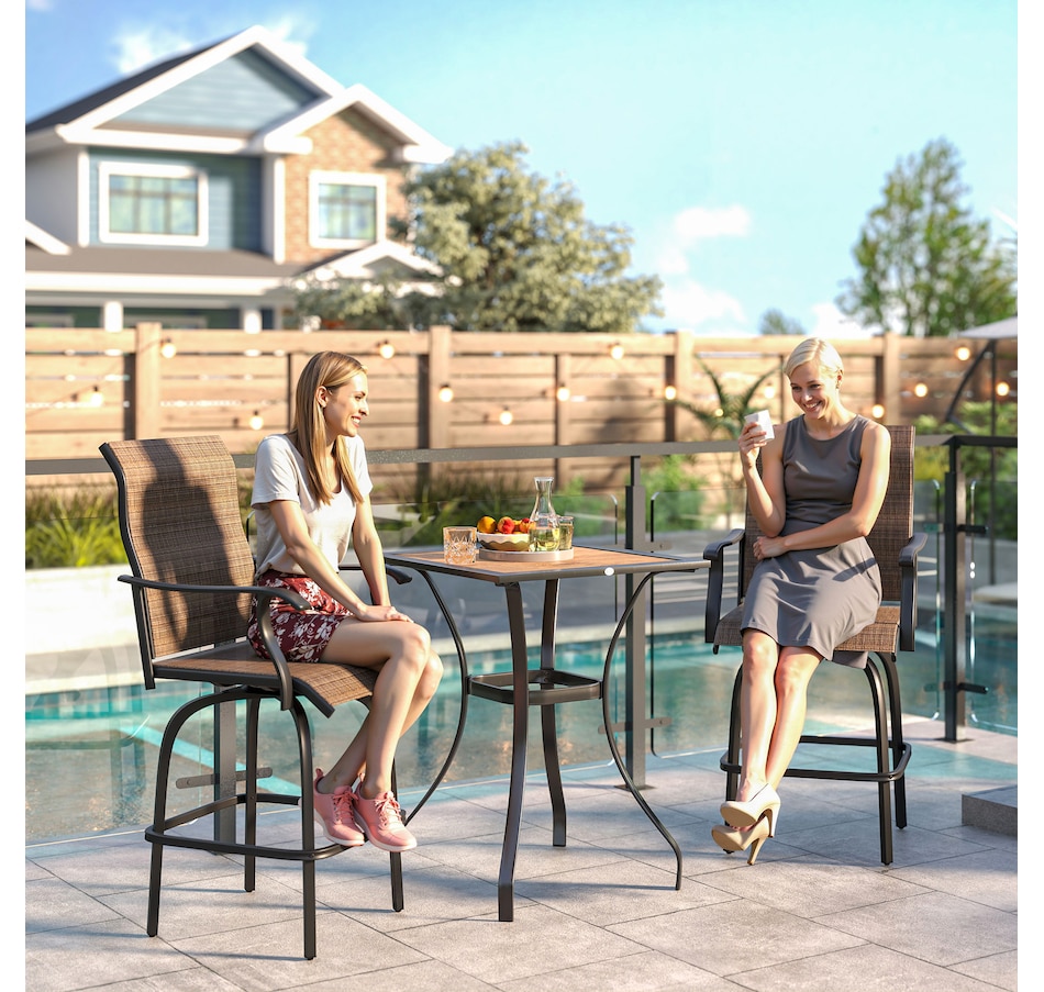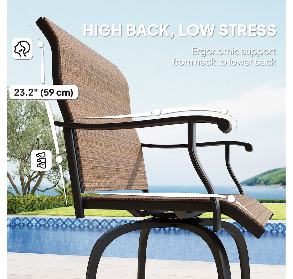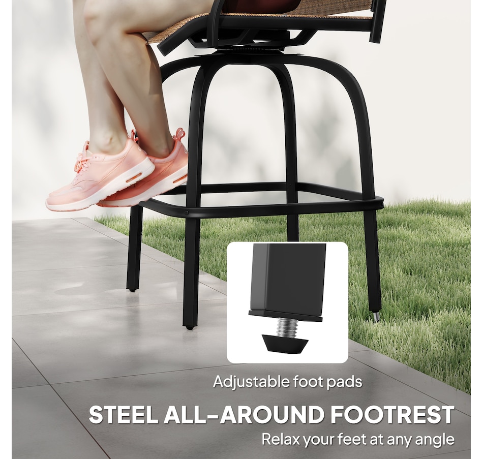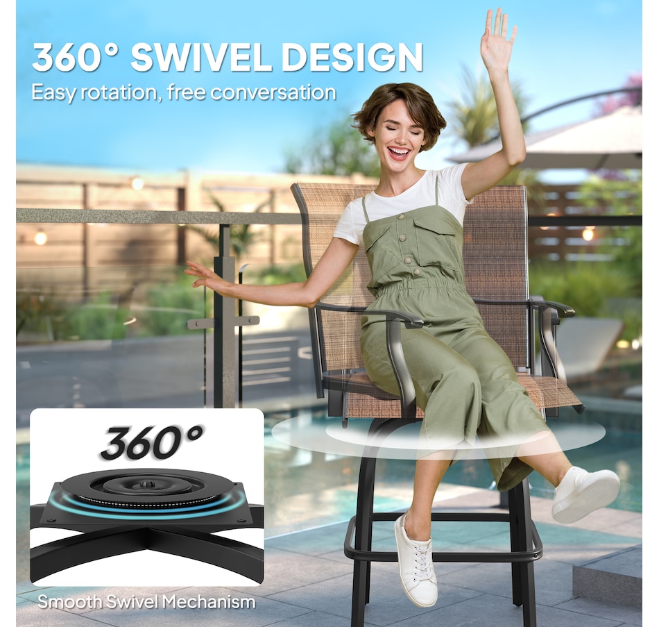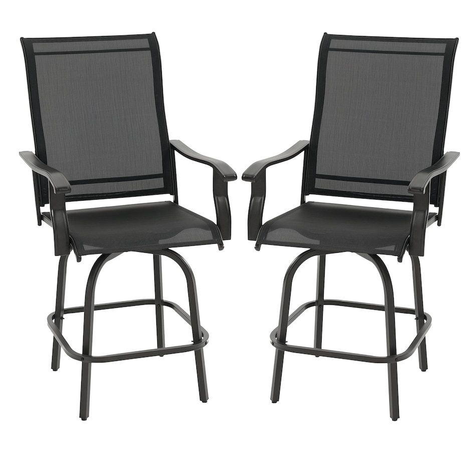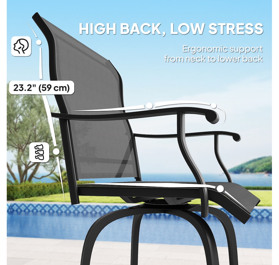 Outdoor Swivel Bar Stools Set of 2 with High Back Curved Armrests